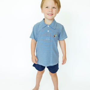 Get ready to cheer in style with this playful Game Day Dress in navy! Featuring charming ruffle details and a trendy drop waist, it’s perfect for spirited girls. Delightful embroidery of cheer pom poms and a megaphone adds a fun, energetic touch to every game day celebration.