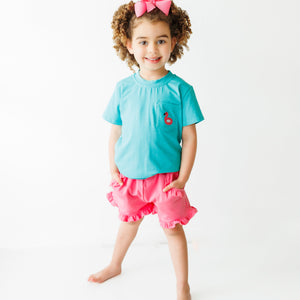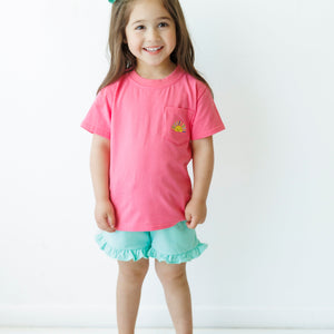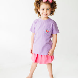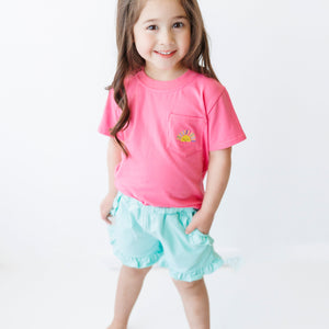 Stay cool and stylish with the Pocket Tee featuring an adorable embroidered Flamingo Floatie on the pocket! Perfect for girls who love to stand out. Keep your essentials close at hand with the added benefit of a pocket on your tee.