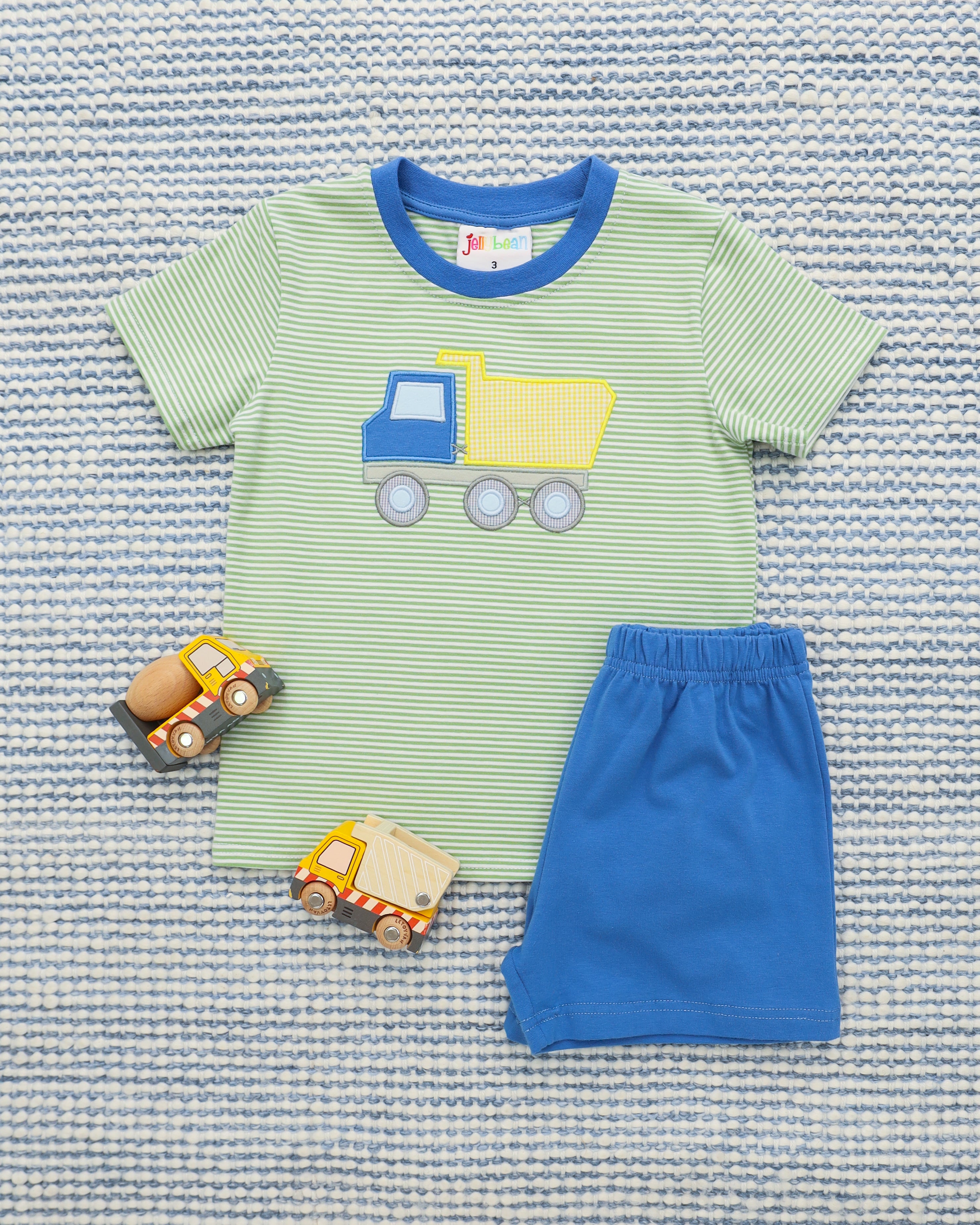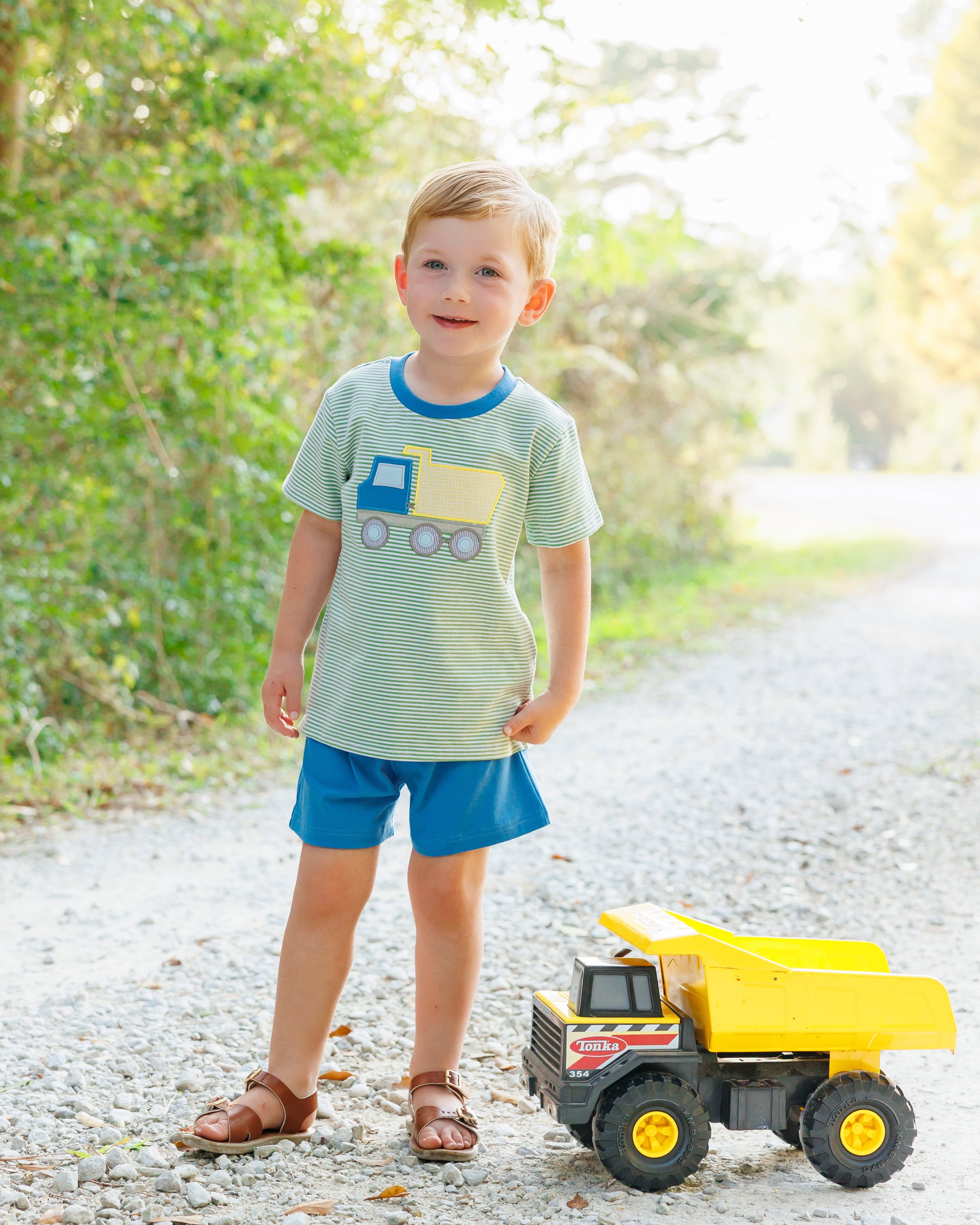 Your little guy will be haulin’ loads of fun all day long in our Dump Truck Short Set!