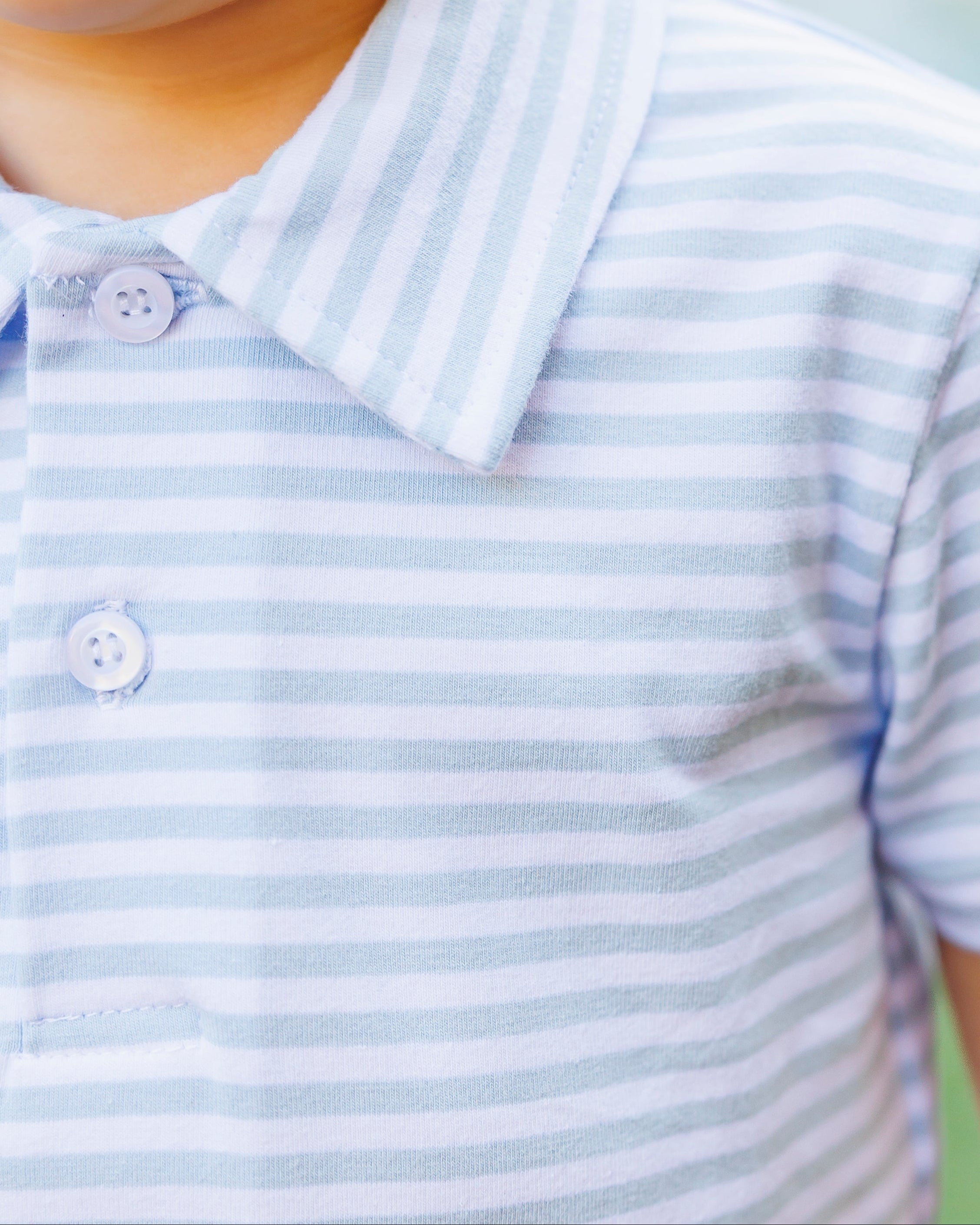 Our Michael Polo in Light Blue Medium Stripe is a classic favorite with timeless style for everyday adventures.