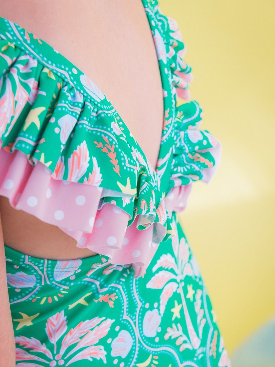 Ruffle Butts & Rugged Butts- Bow V-Back One Piece Swimsuit- Coconut Cabana