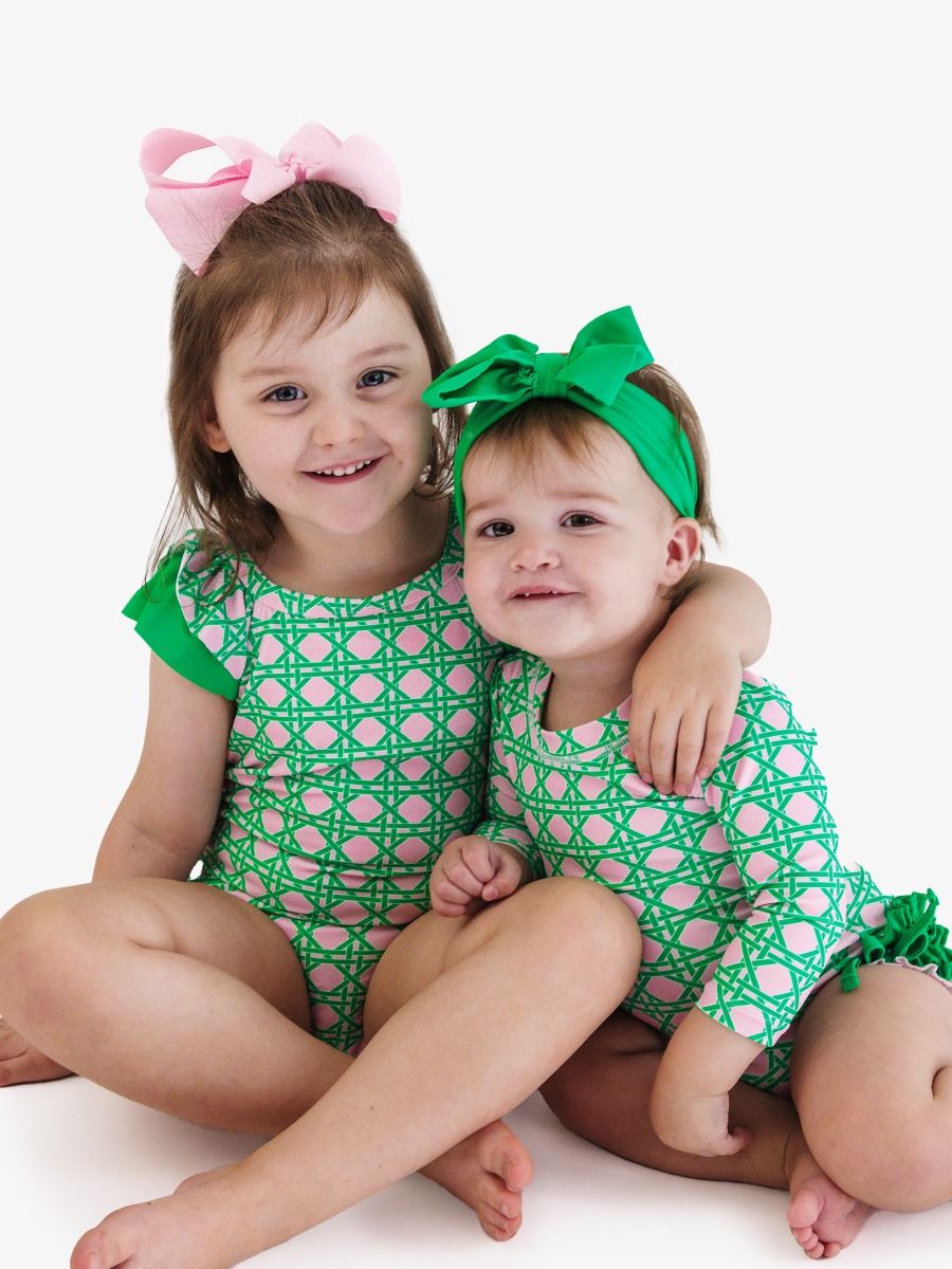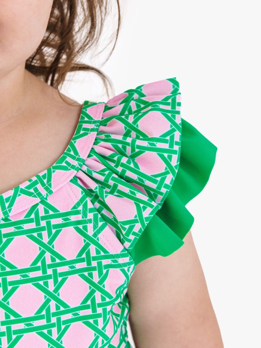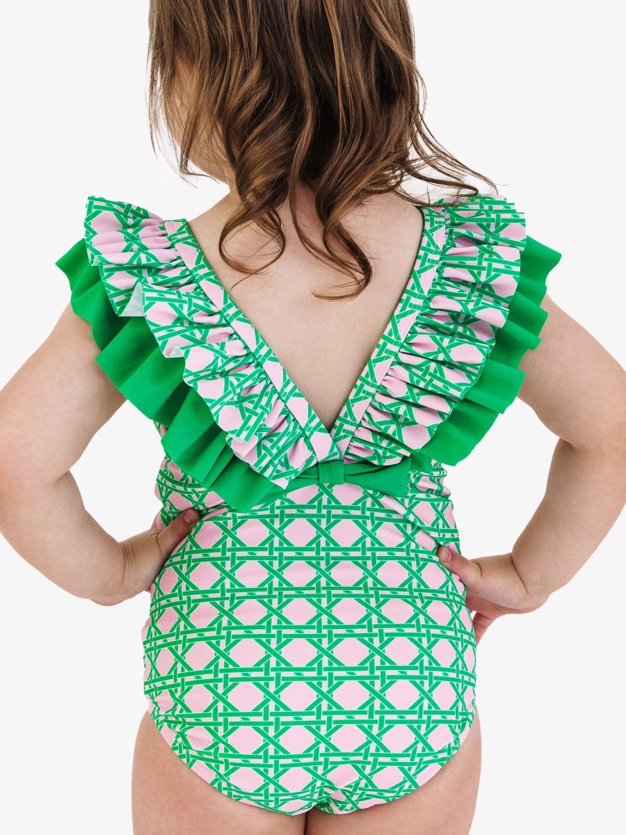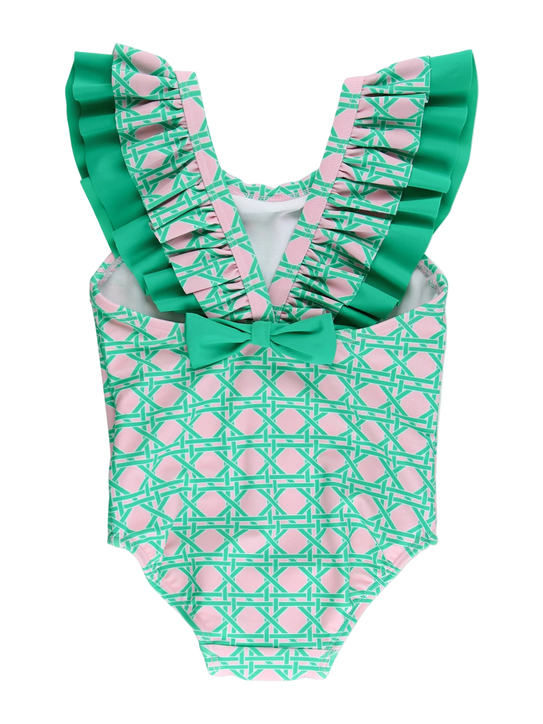 Bow V-Back One Piece Swimsuit- Pink Coastal Cane
