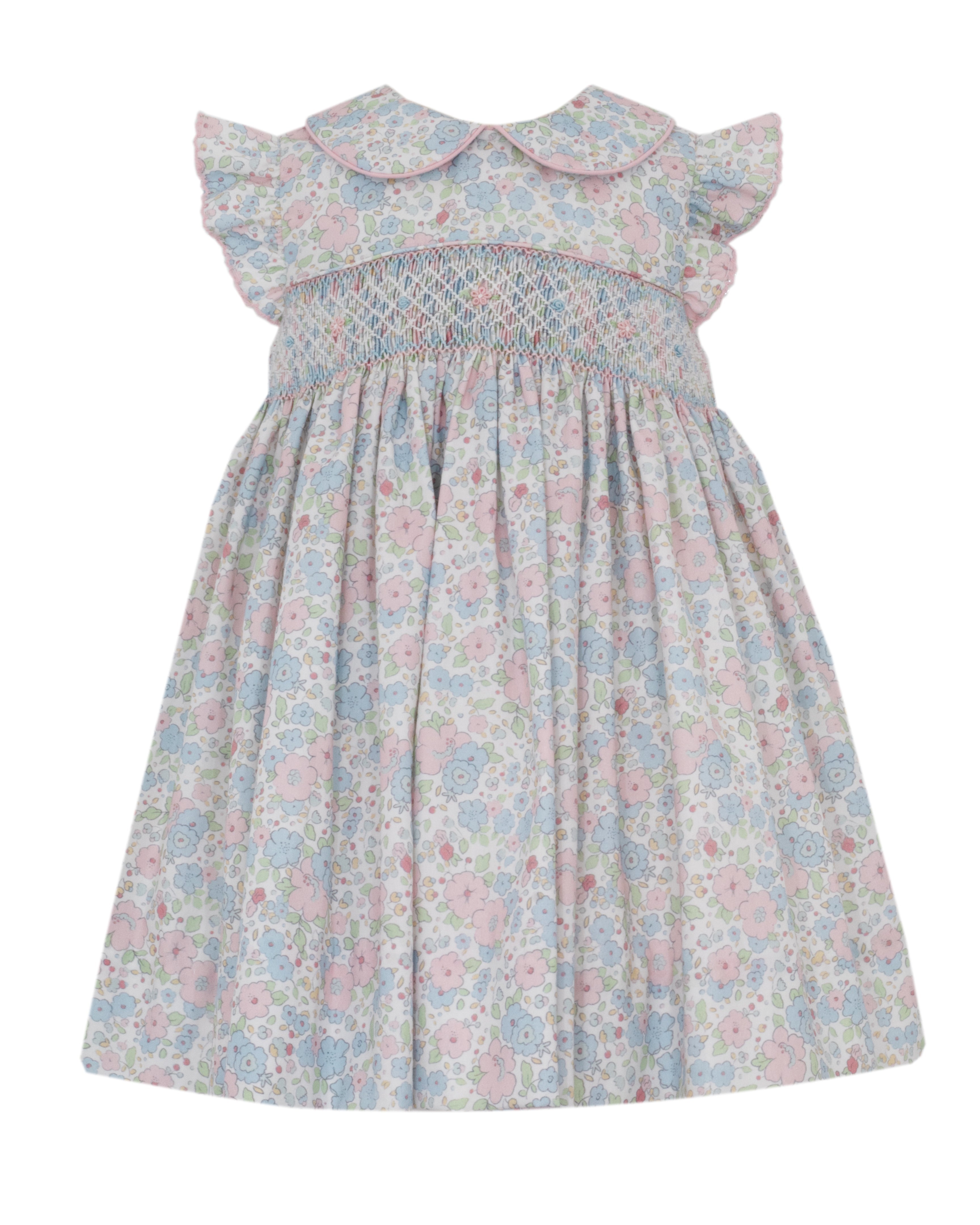 Petit Bebe- Caroline - Pink And Blue Liberty Floral Sleeveless Dress W/ Collar