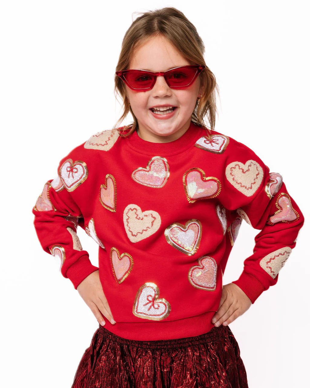 Queen of Sparkles- Kids Red Heart Cookies Sweatshirt- Red