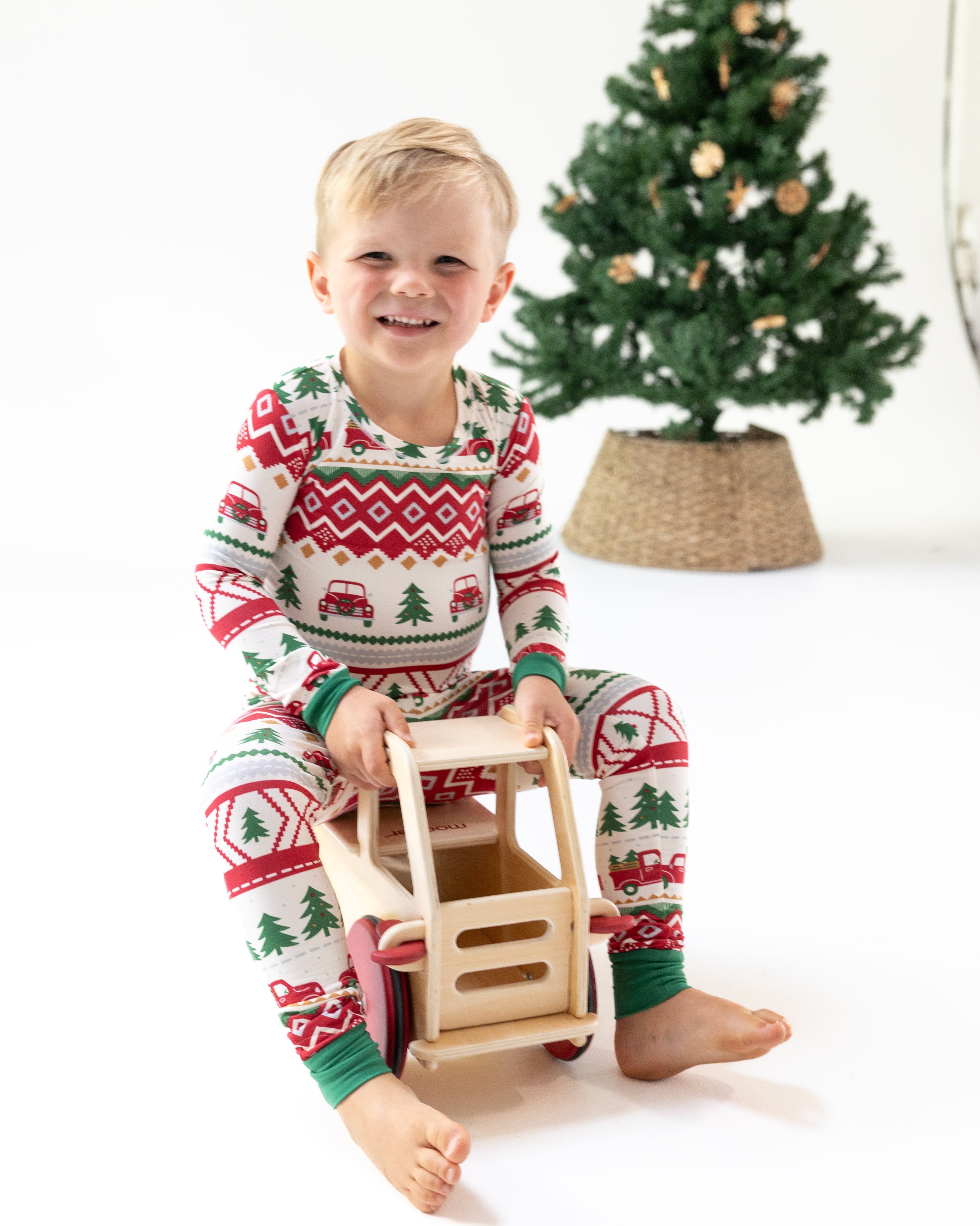 Angel Dear- Red Truck Fair Isle - L/S Loungewear Set- Red/Green