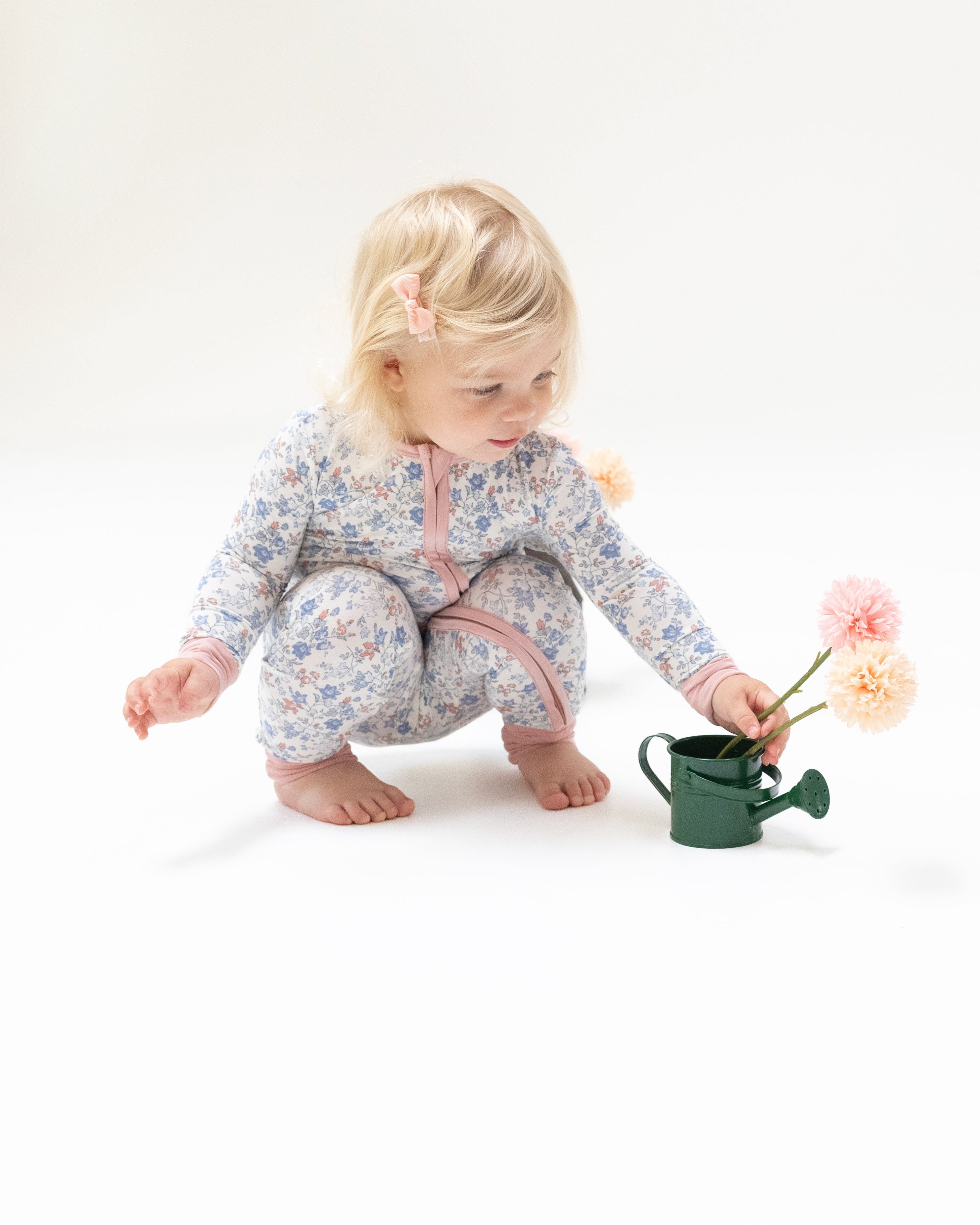 Country Girl Floral 2 Way Zipper Romper- Ivory/Mellow Rose