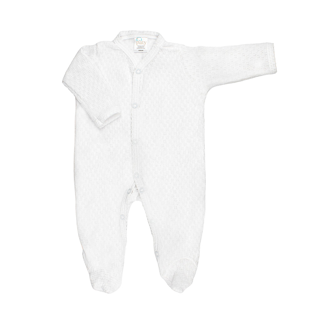 Have your little one cozy and stylish with the Knit Footie W/Trim in White. Made from a comfortable 50/50 blend. Perfect for lounging or playtime, let your little one stand out in this playful and comfy piece.