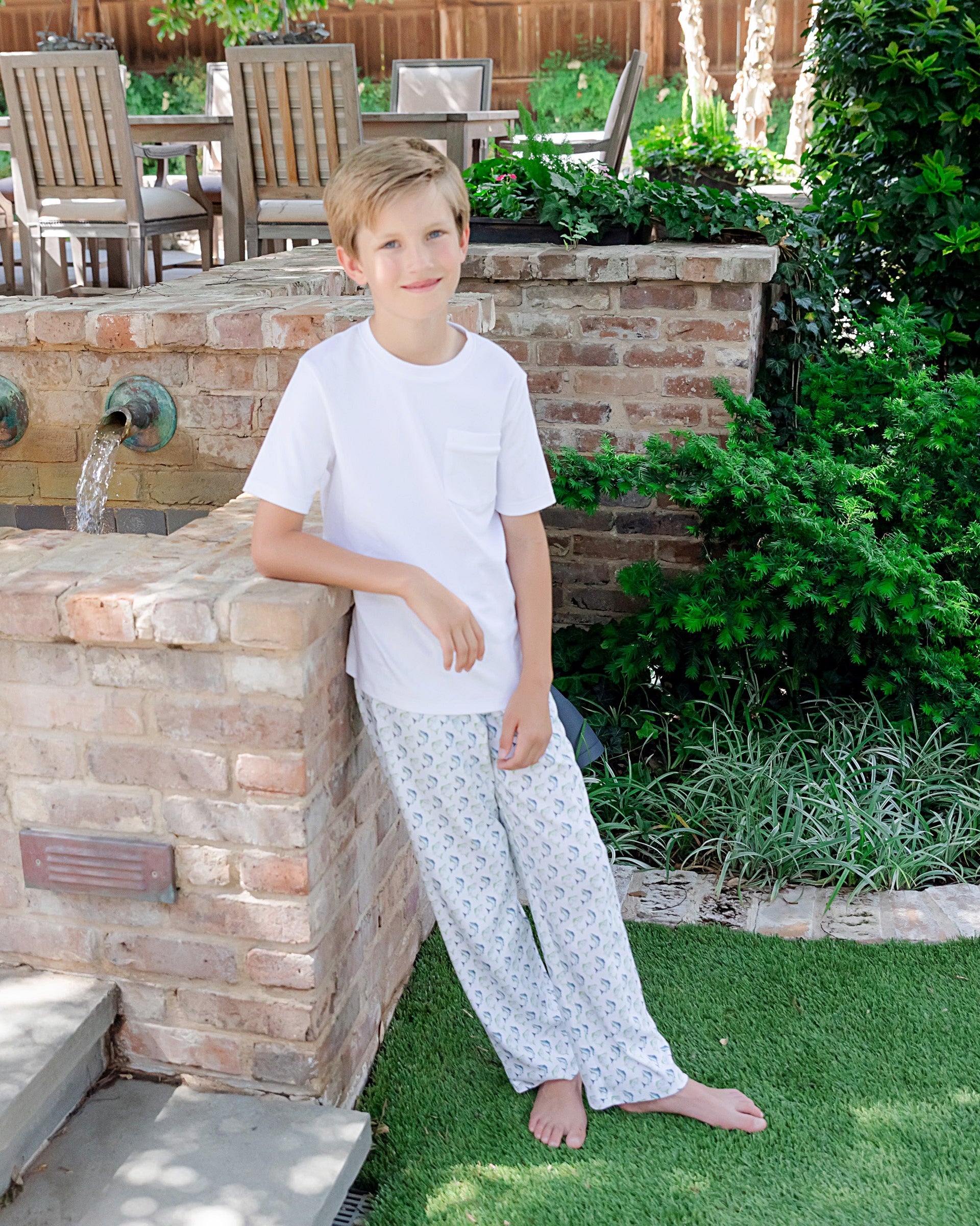 Pants have a drawstring waistband. Made from 100% Peruvian Cotton. This item is not intended for sleepwear.