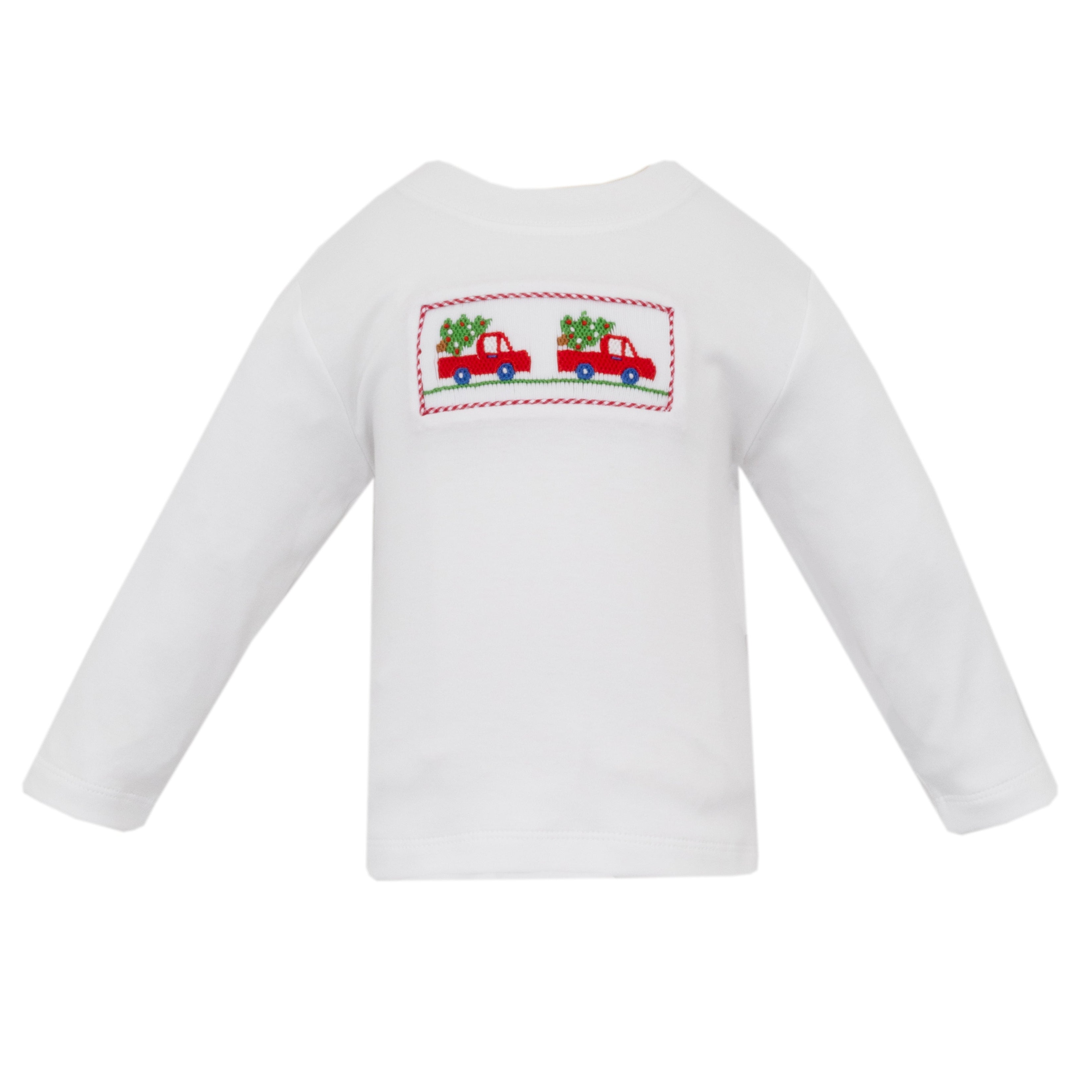 Petit Bebe- X'mas TREES W/ CAR - Boy's white knit T-shirt L/S