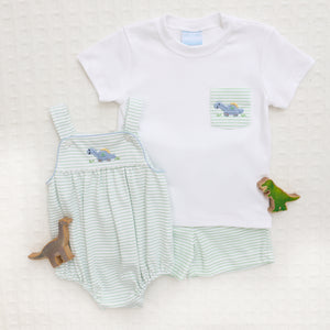 Petit Bebe- Dinos- Green Knit Stripe Boy's White T-Shirt Set W/Diaper