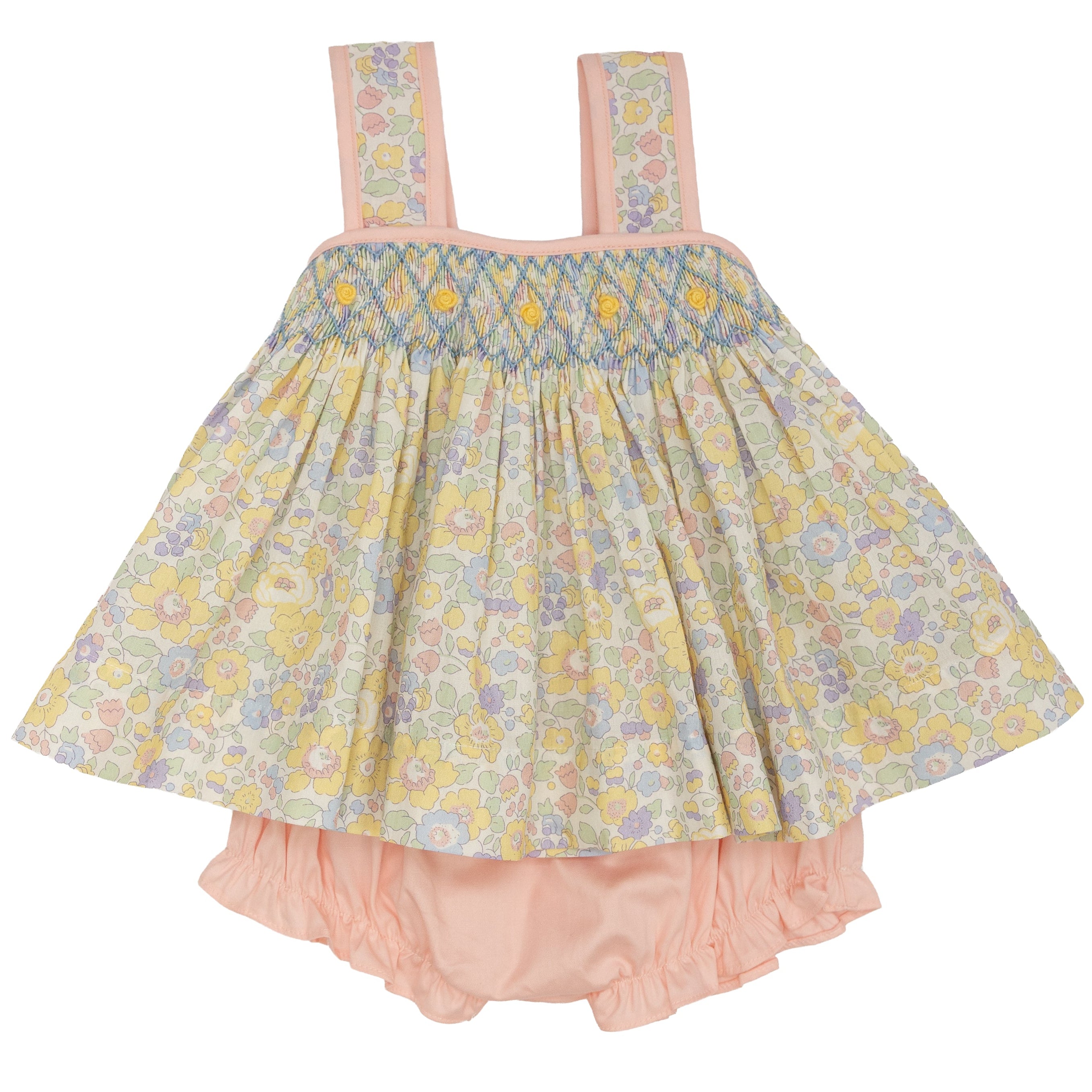 Lulu Bebe- Floral Smocked Sleeveless Bloomer Set