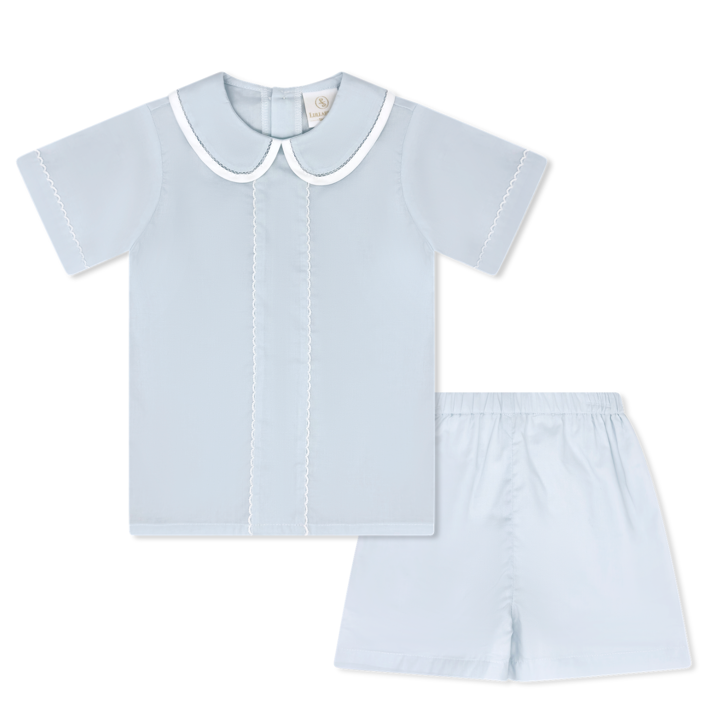 Classic and refined, the Jonathan Short Set in Blessings Blue Batiste is a timeless ensemble for your little gentleman.