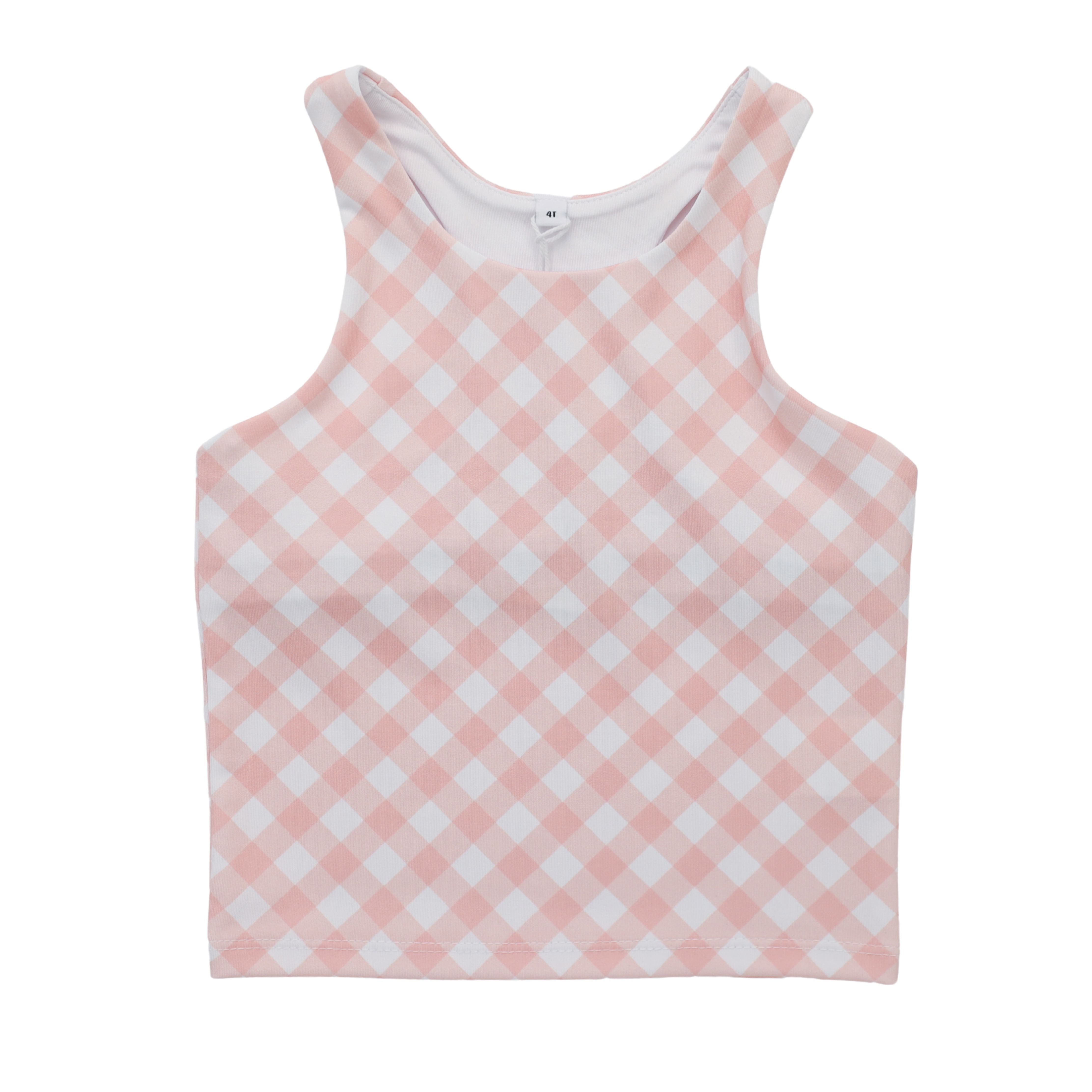 This athletic tank top in the pink gingham print is built for movement and all-day comfort. Made with soft fabric to keep her cool and dry. Perfect for practice, play, or layering under her favorite activewear.