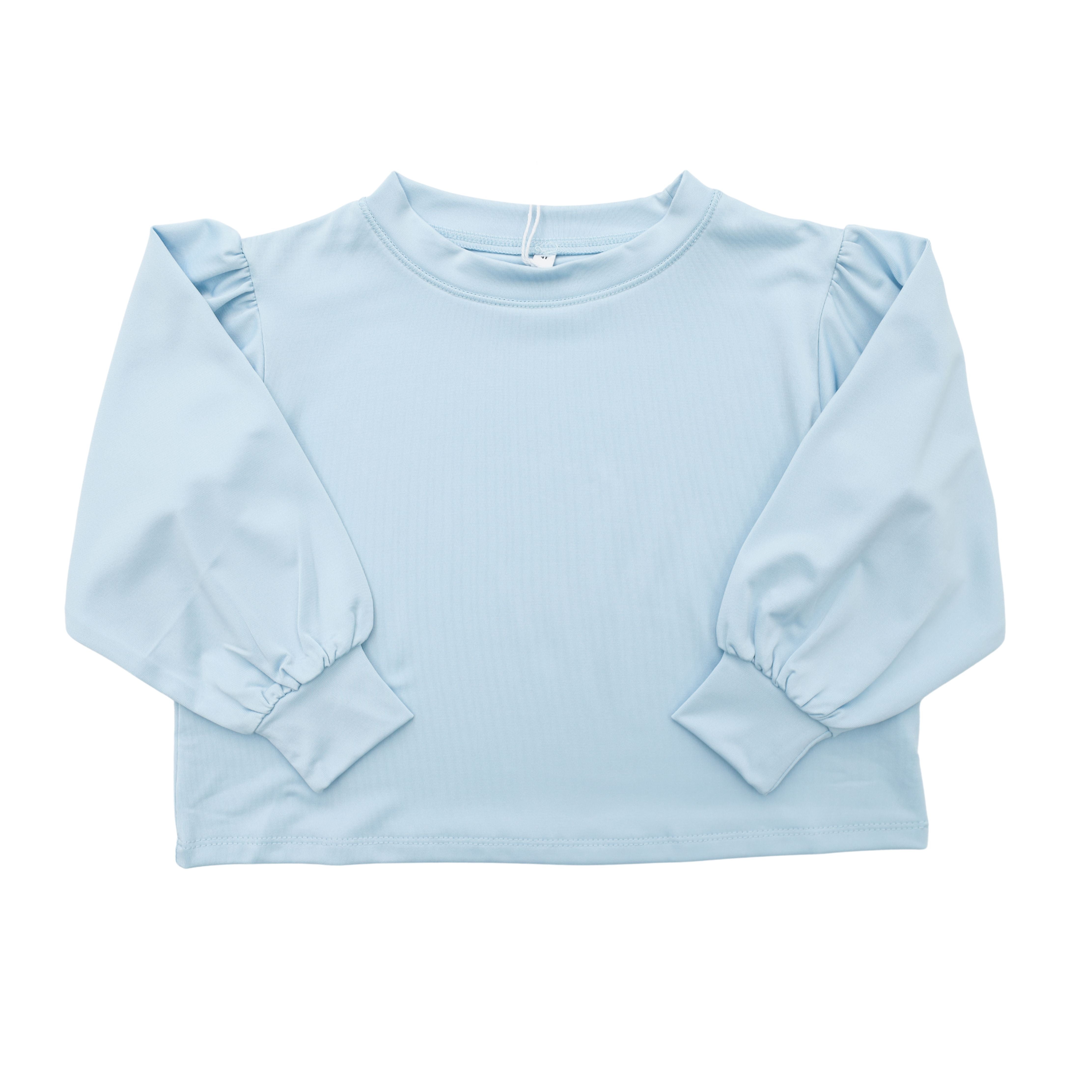 Keep her cool and confident in this light blue long sleeve box top. Lightweight and breathable with a relaxed fit for easy movement. Ideal for layering over tanks or pairing with leggings for sporty style.