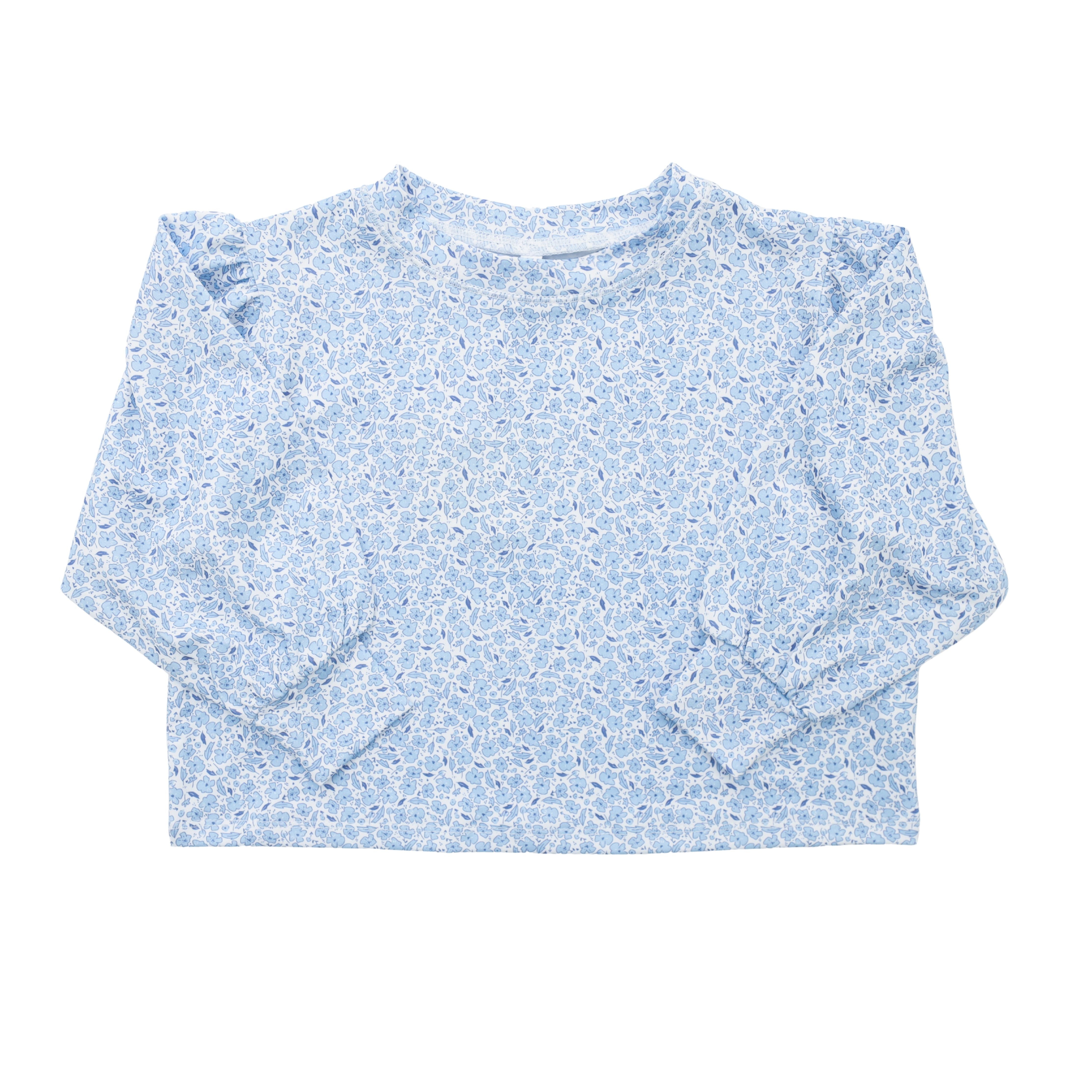 Keep her cool and confident in this mini blue floral print long sleeve box top. Lightweight and breathable with a relaxed fit for easy movement. Ideal for layering over tanks or pairing with leggings for sporty style.