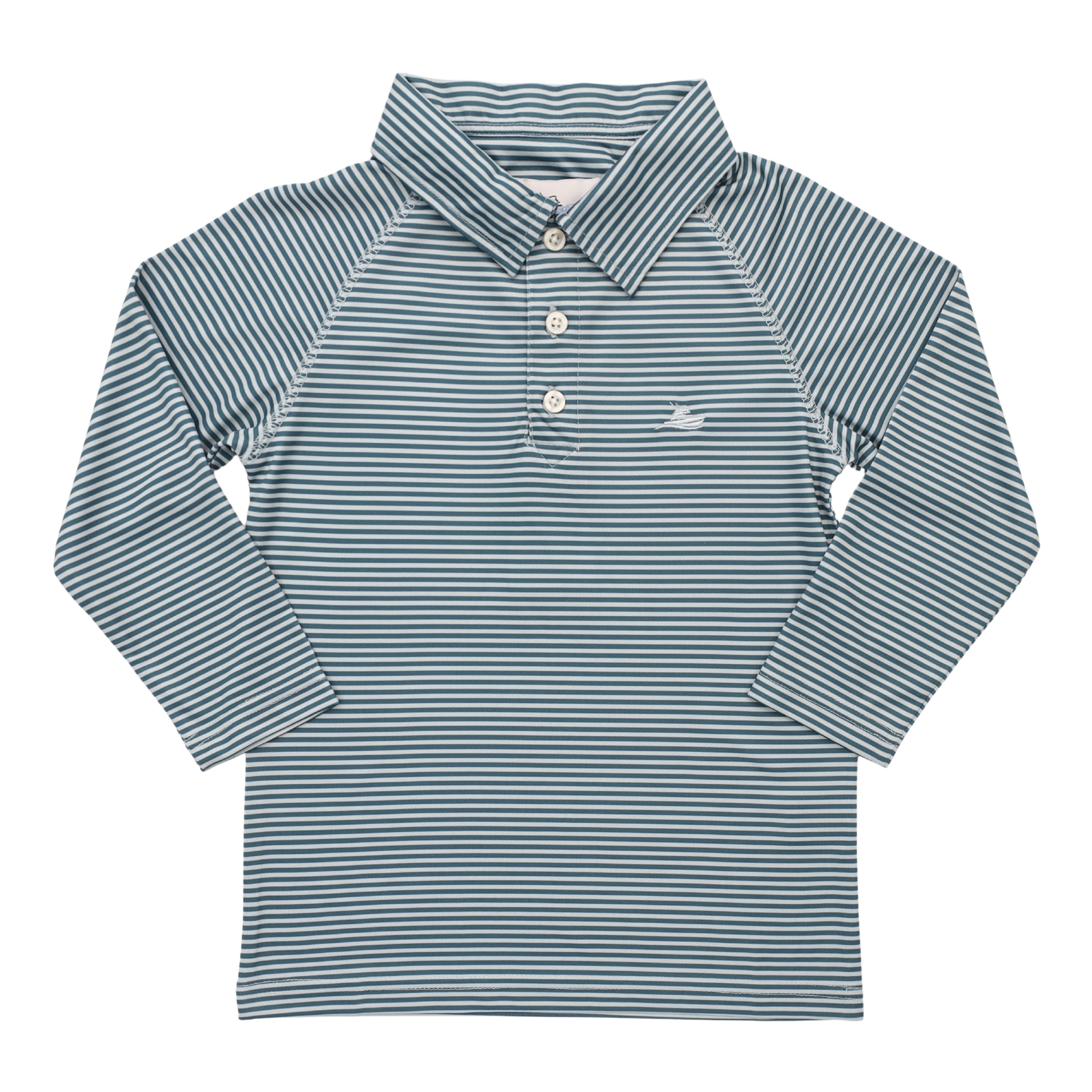 Get ready to dress your boy in style with the Polo in Blue Haze Stripe. Perfect for a dressy occasion or just a day out, this polo will keep him looking cool and stylish.