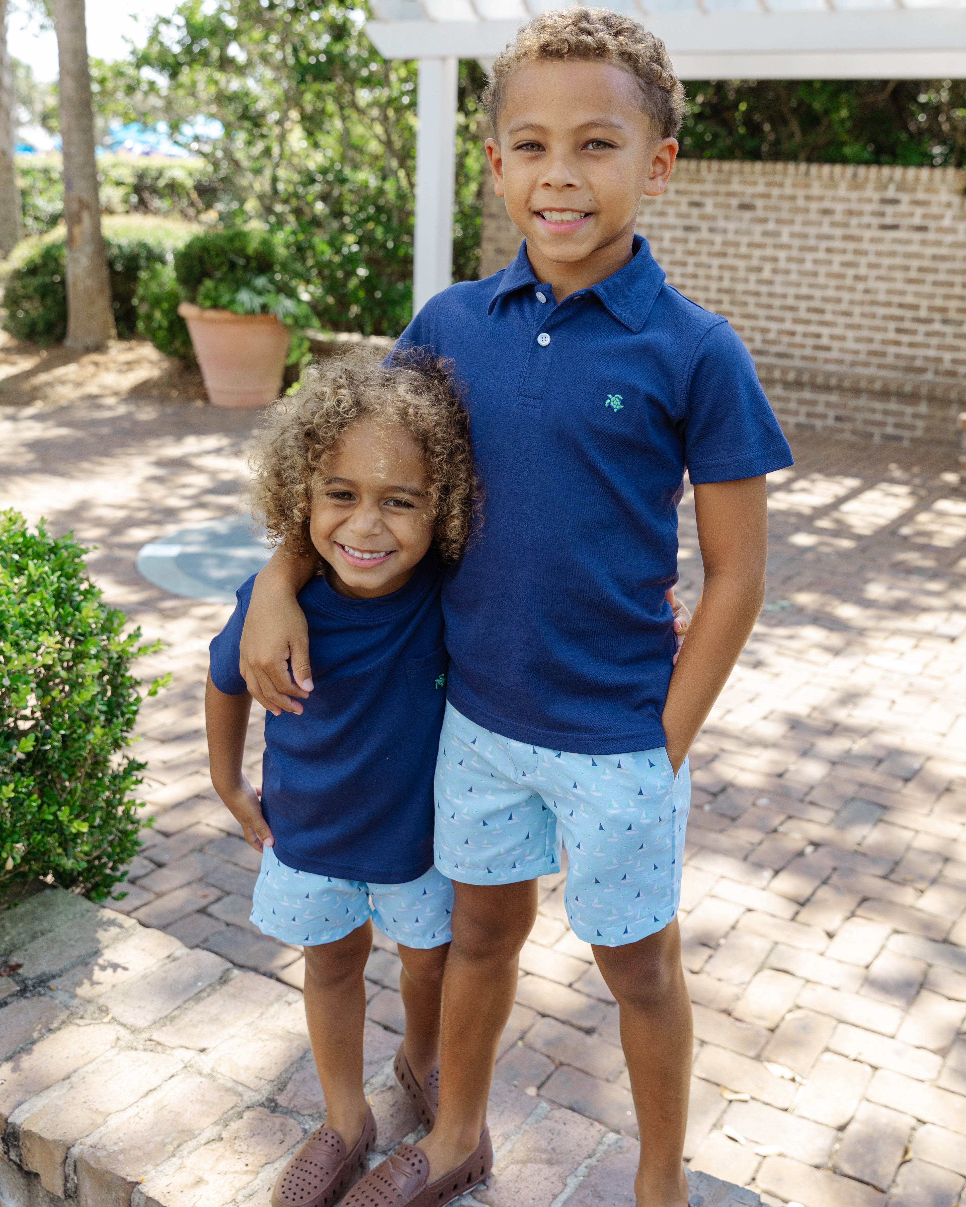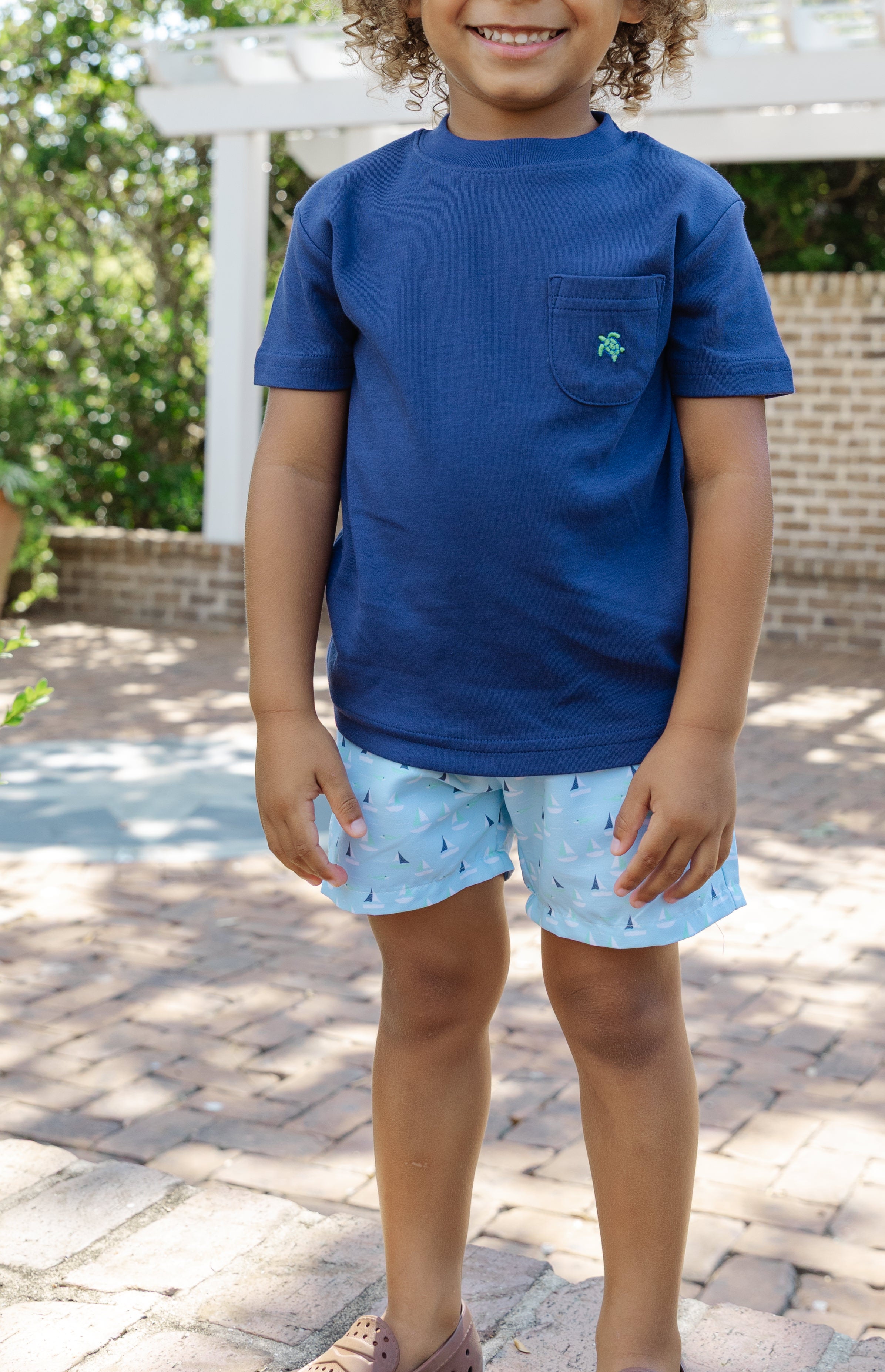 Set sail in these cheerful Sailboats pull-on shorts. Crafted from soft, breathable cotton with a relaxed fit. Perfect for beach days, vacations, or family photos. The playful print adds seaside fun to every look.