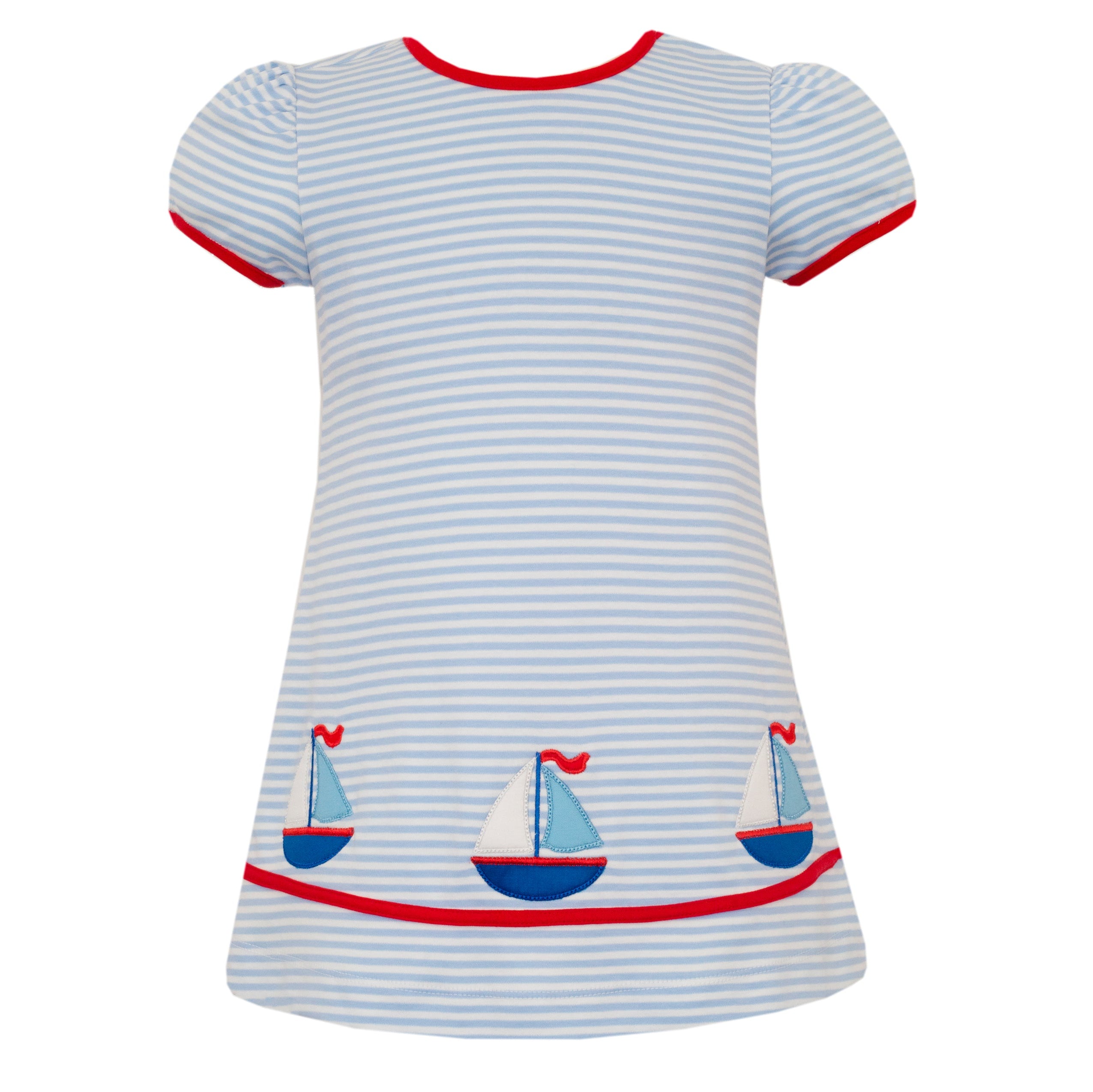 Sailboats Knit A Line Dress- Blue Stripe