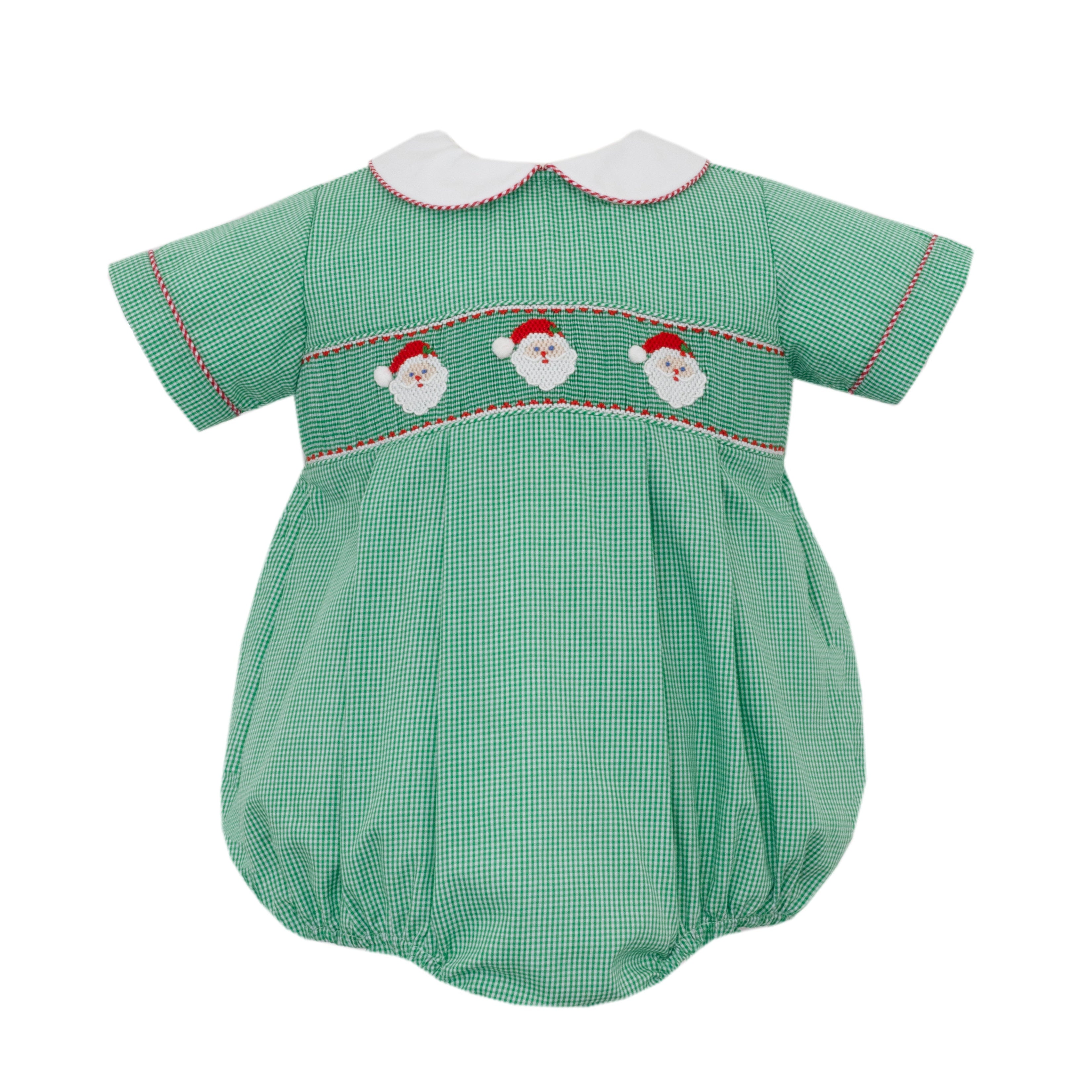 Petit Bebe- SANTA FACE BOY's - Green gingham boy's bubble S/S