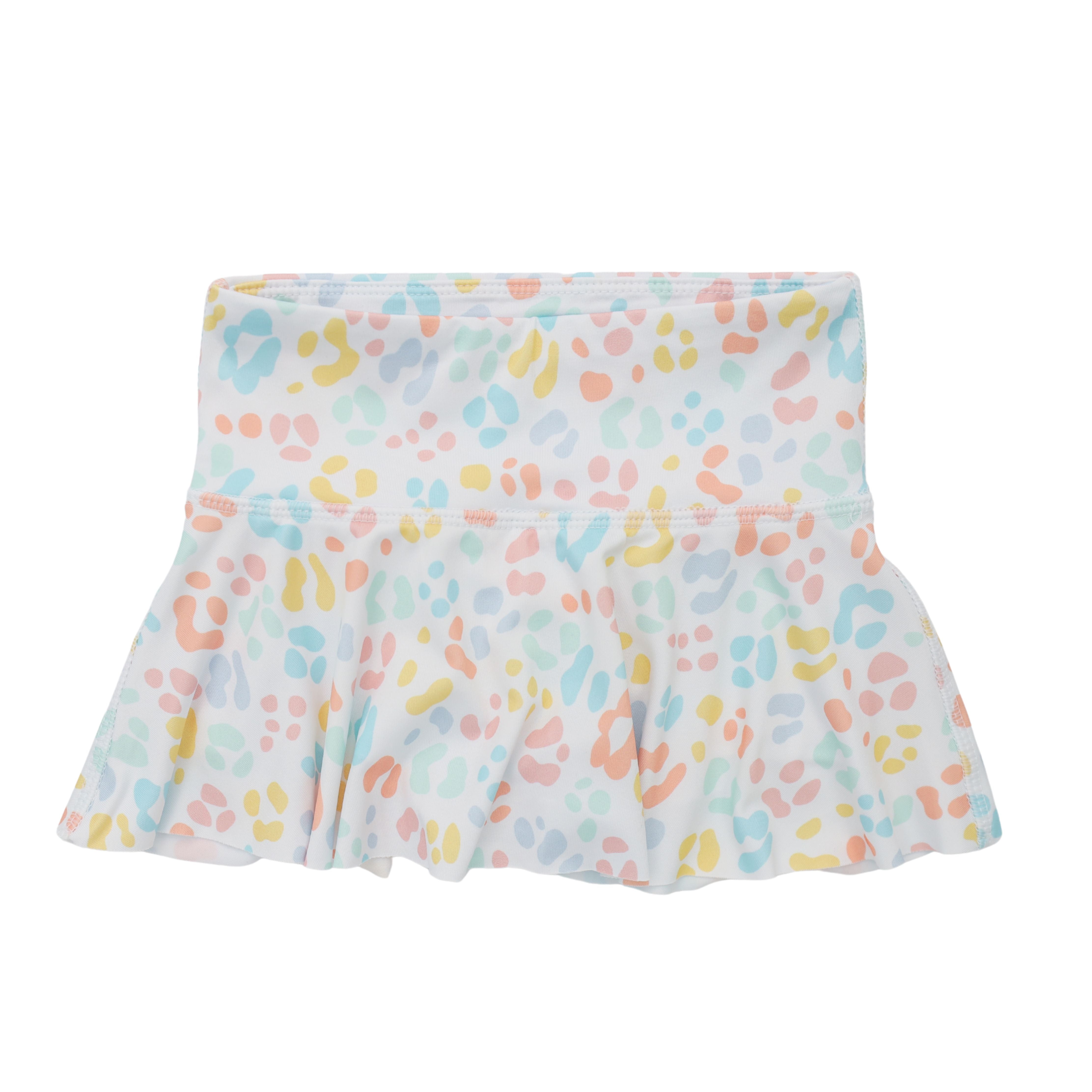 Wild and vibrant in multi-colored leo print, this skort with built-in shorts brings bold fun to every step. Lightweight and comfy, perfect for fearless twirls and adventures. Made to move, made to shine—just like she does.
