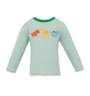 Petit Bebe- DINOSAURS - Blue knit stripe boy´s PANT SET - w/ white knit T-shirt L/S