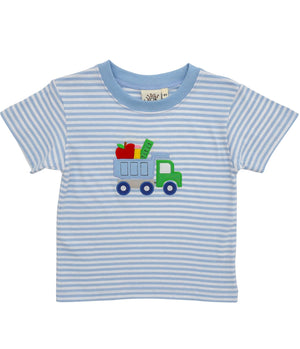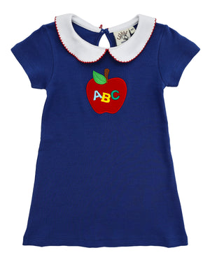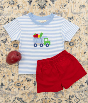 Get your little ones ready for back to school with this adorable blue and white striped shirt! Featuring a playful dog applique with an apple and crayons, this top is perfect for boys who want to make a statement. Fun and functional, it's a must-have for the new school year!