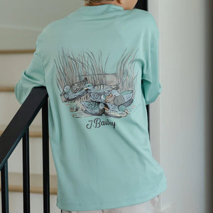 J. Bailey- L/S PERFORMANCE LOGO TEE-CAMO DOG ON DENIM