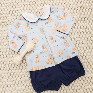 Baby Club Chic- Puppy Adventures - Boy Printed Bubble With Round Collar- Printed