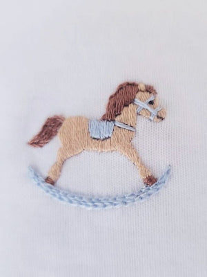- Hand Embroidered Rocking Horse with pink accents