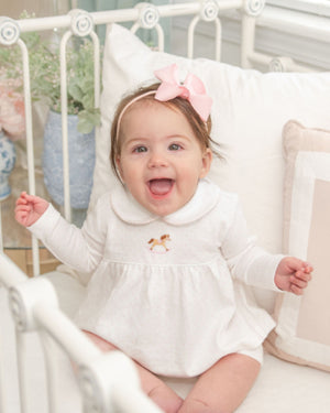 Get ready for cuteness overload with the Milly Marie Pima Spotted Puppy Bubble! This delightful romper, featuring a playful spotted puppy hand embroidered design, is crafted from the finest Pima cotton to keep your little one super comfy and stylish. The sweet pink mini stripe pattern adds a touch of classic charm, making it perfect for any adventure.