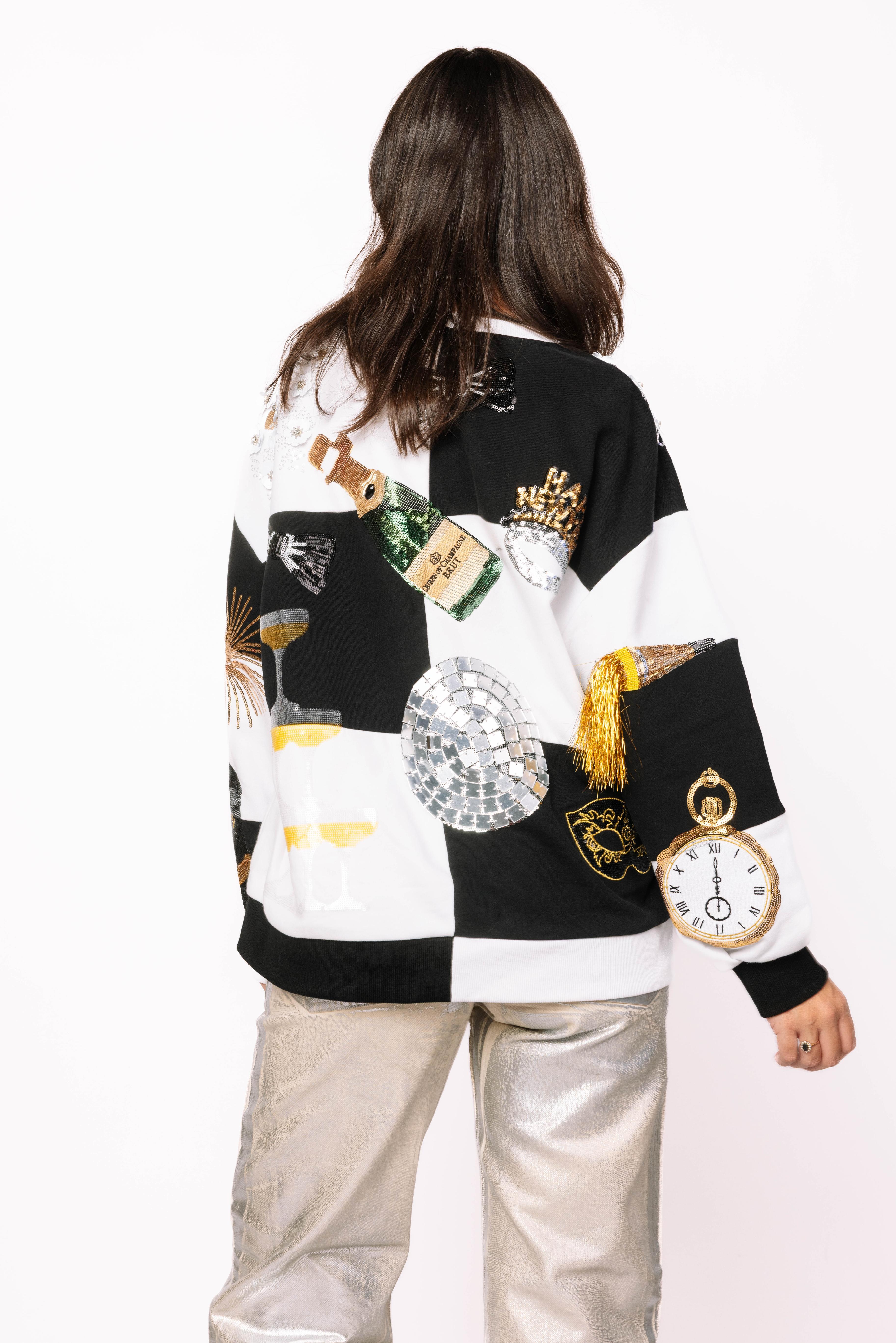 Queen of Sparkles- Black & White Checkered Nye Icon Sweatshirt- Black