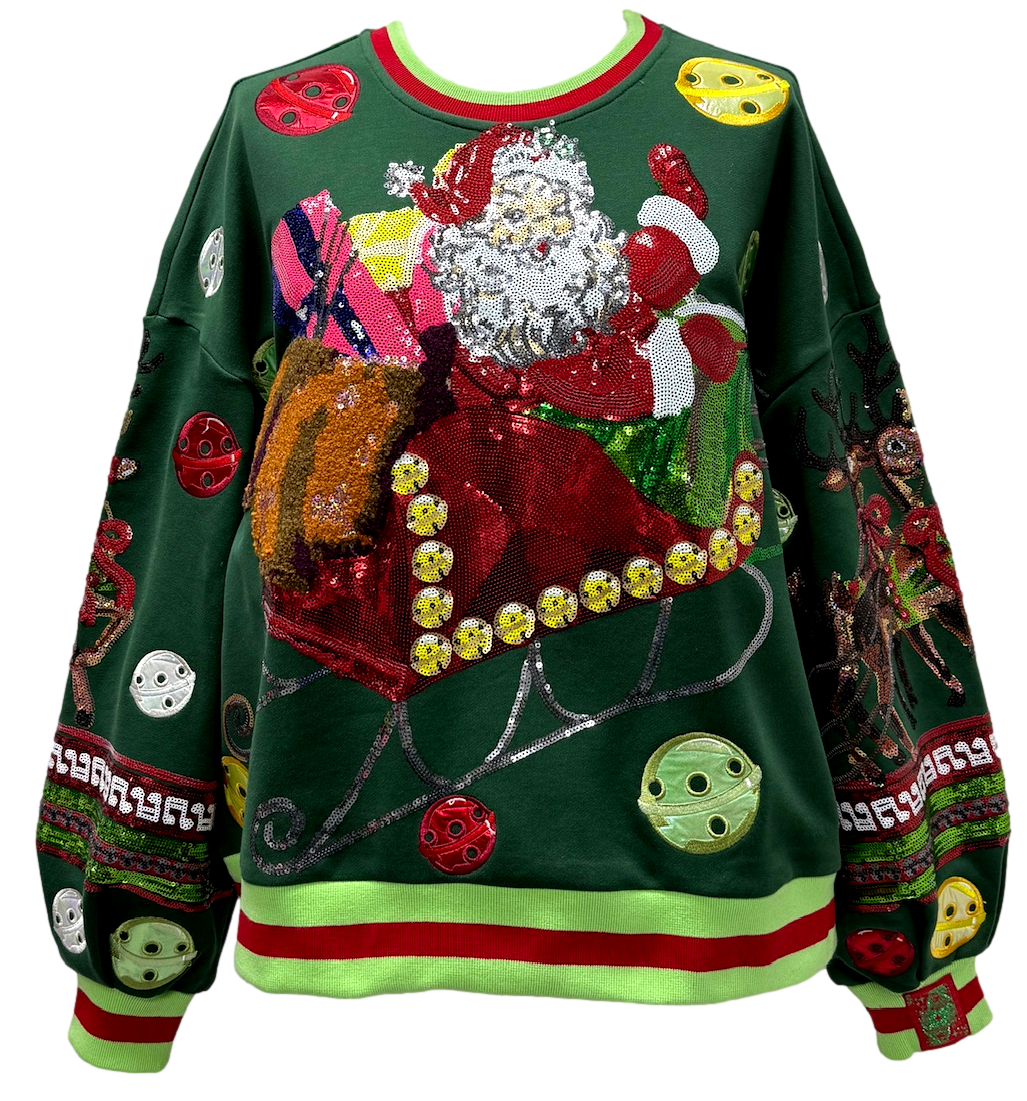 Queen of Sparkles- Dark Green Vintage Jingle Bell Santa Sweatshirt- Dark Green