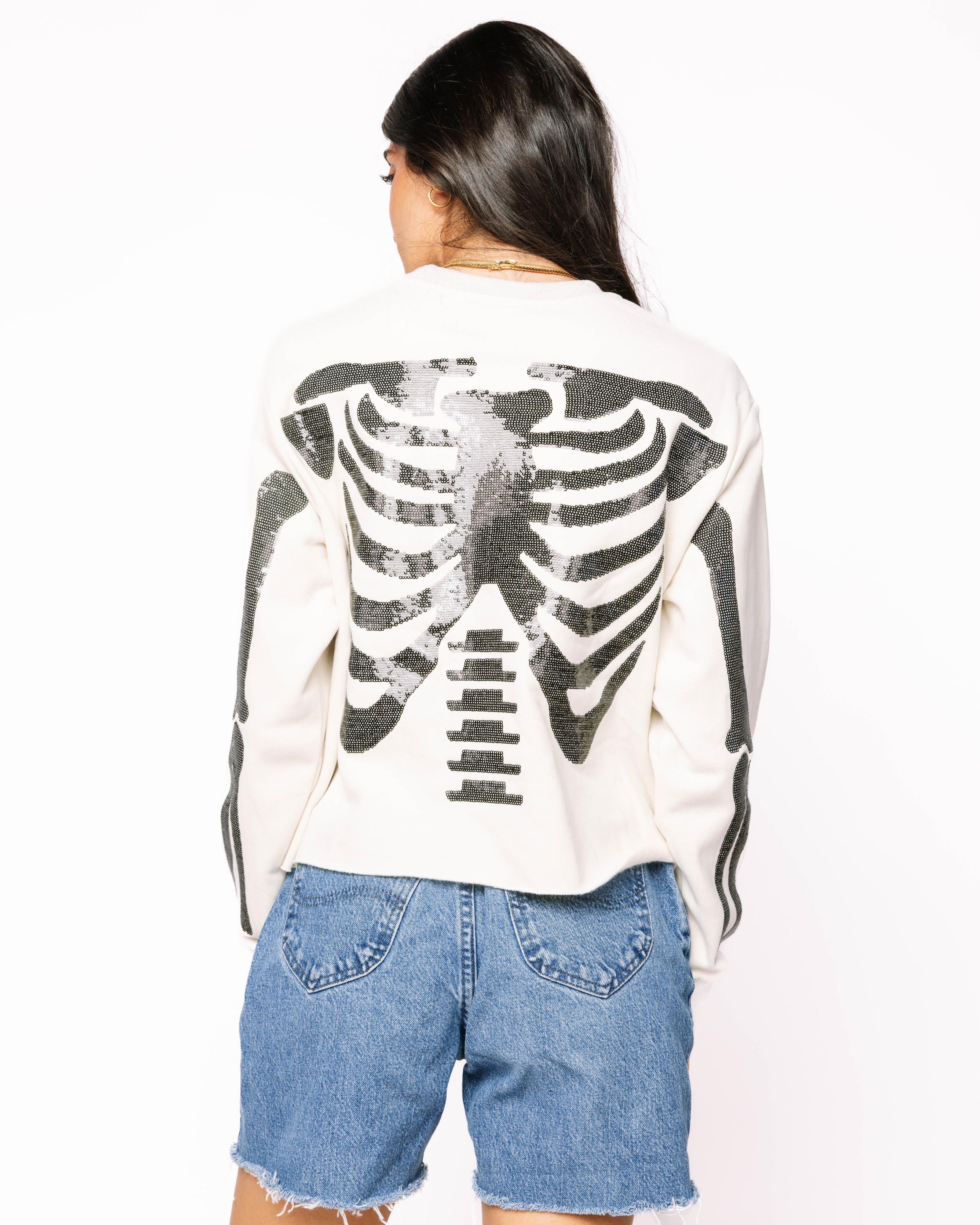 Queen of Sparkles- Ivory & Black Skeleton Sweatshirt- Ivory