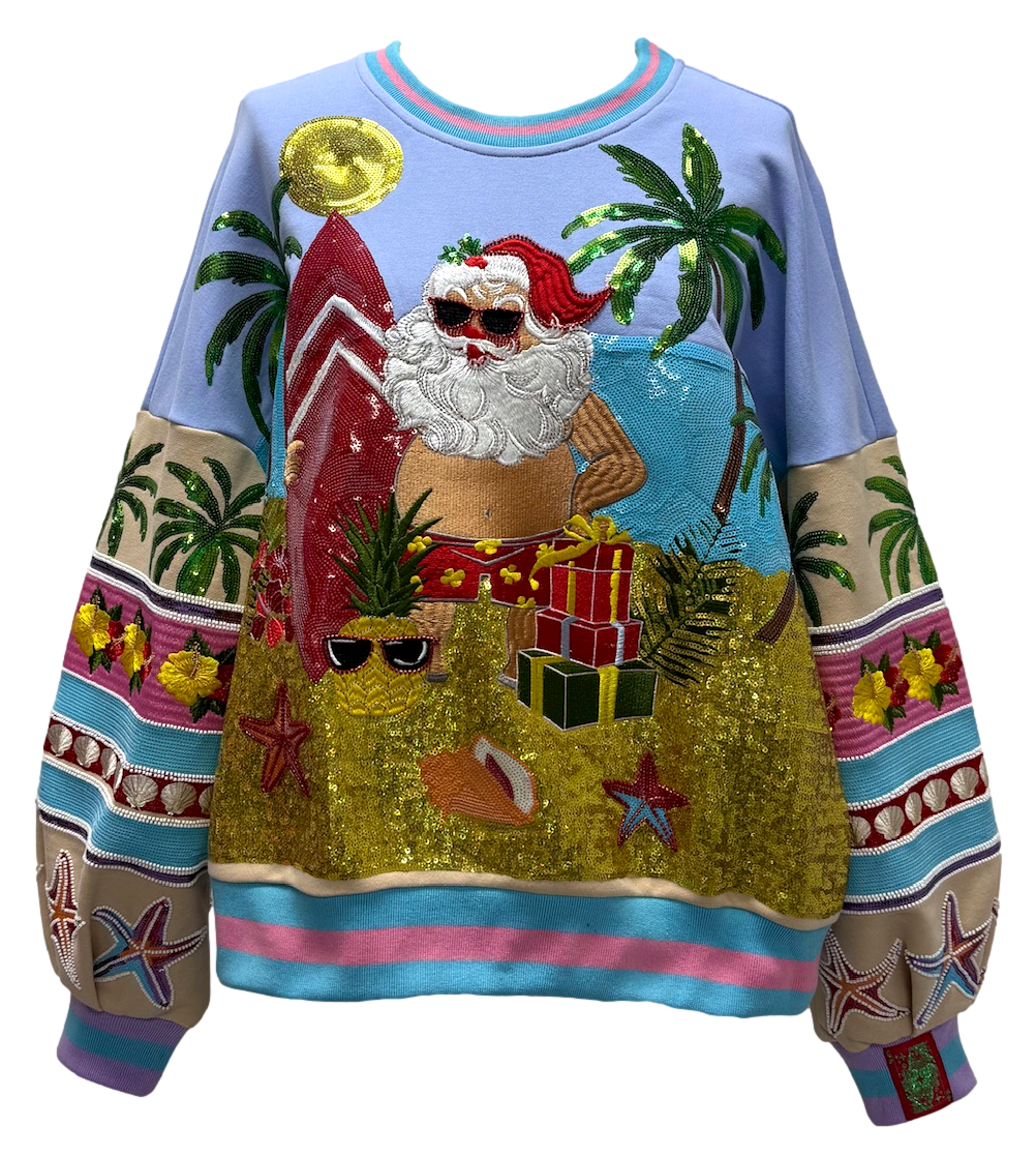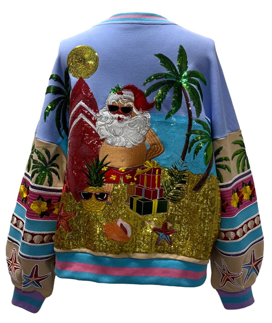 Queen of Sparkles- Multi Vintage Vacation Santa Sweatshirt- Multi