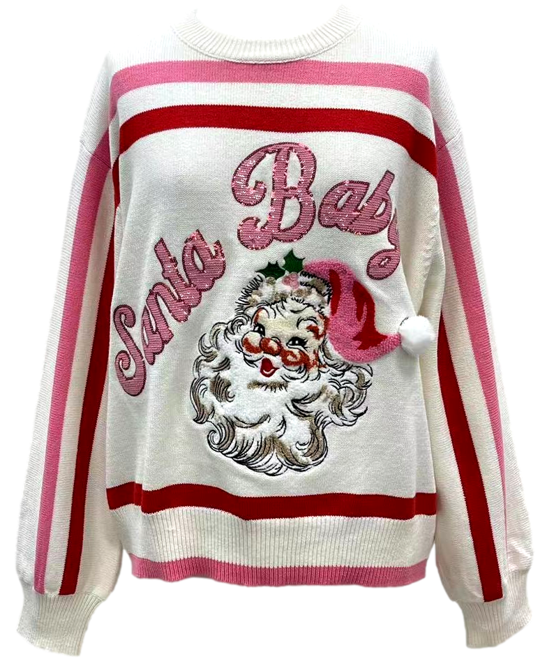 Stripe 'Santa Baby' LS Sweater- (Women's)