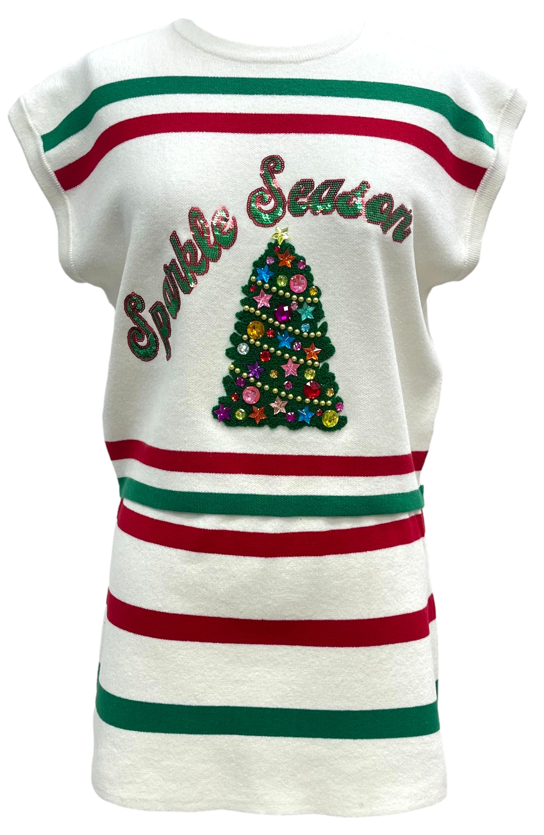 Queen of Sparkles- White, Red & Green Stripe Skirt- White