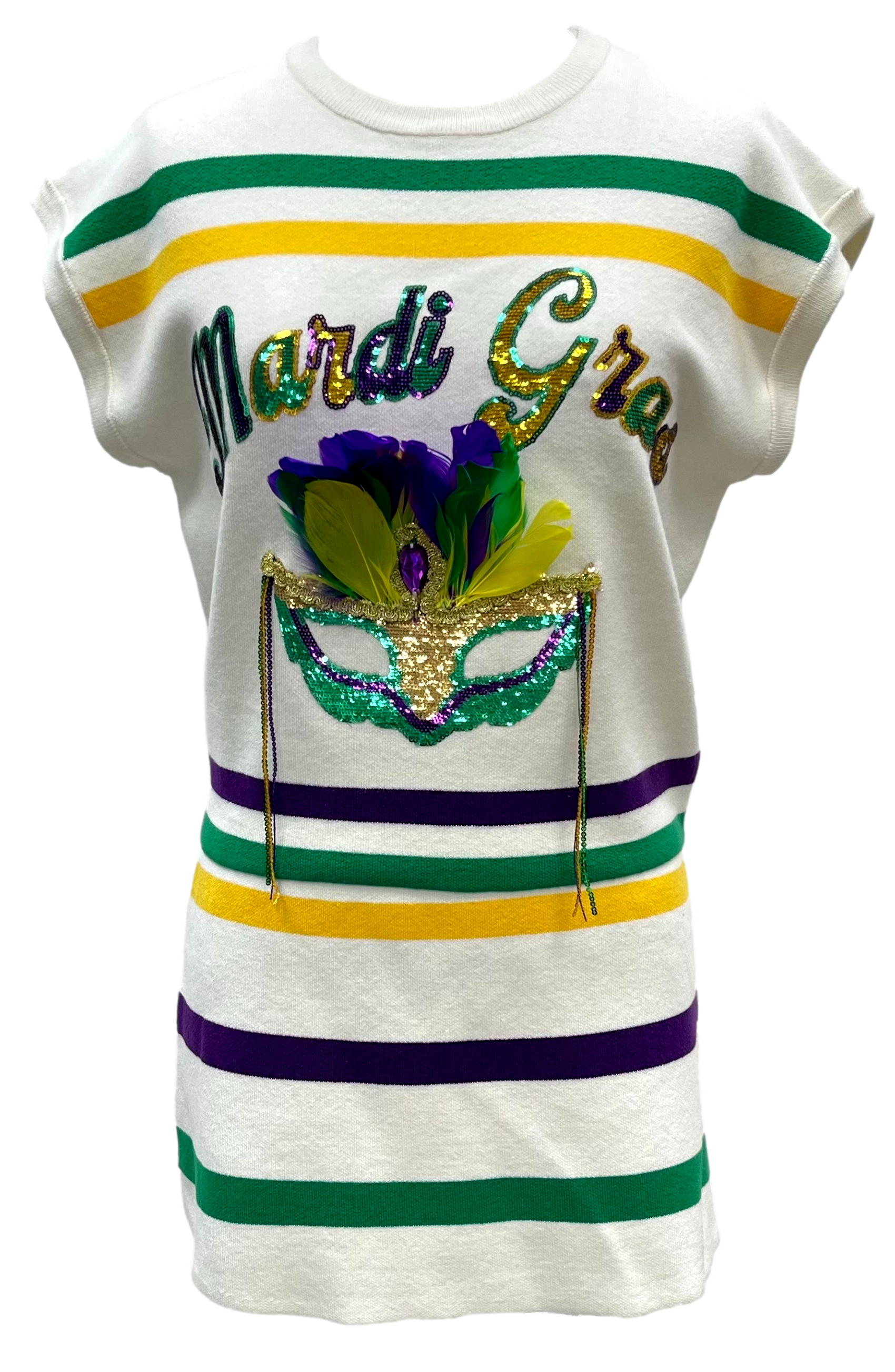 Striped Mardi Gras Mask Top- White (Women's)