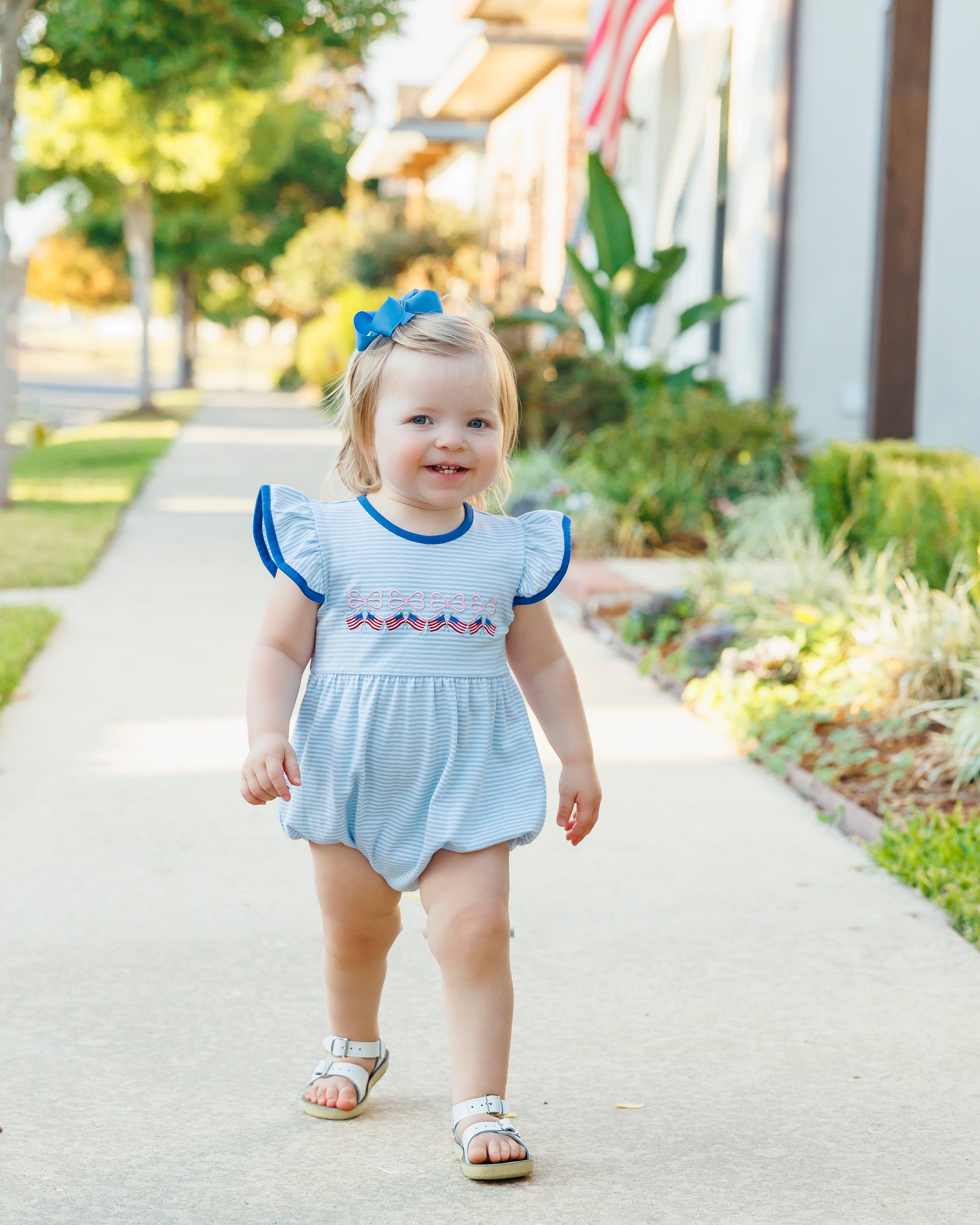 Backyard barbecues and star-spangled days are right around the corner. Get your girl ready in our Let Freedom Ring Flutter Bubble.