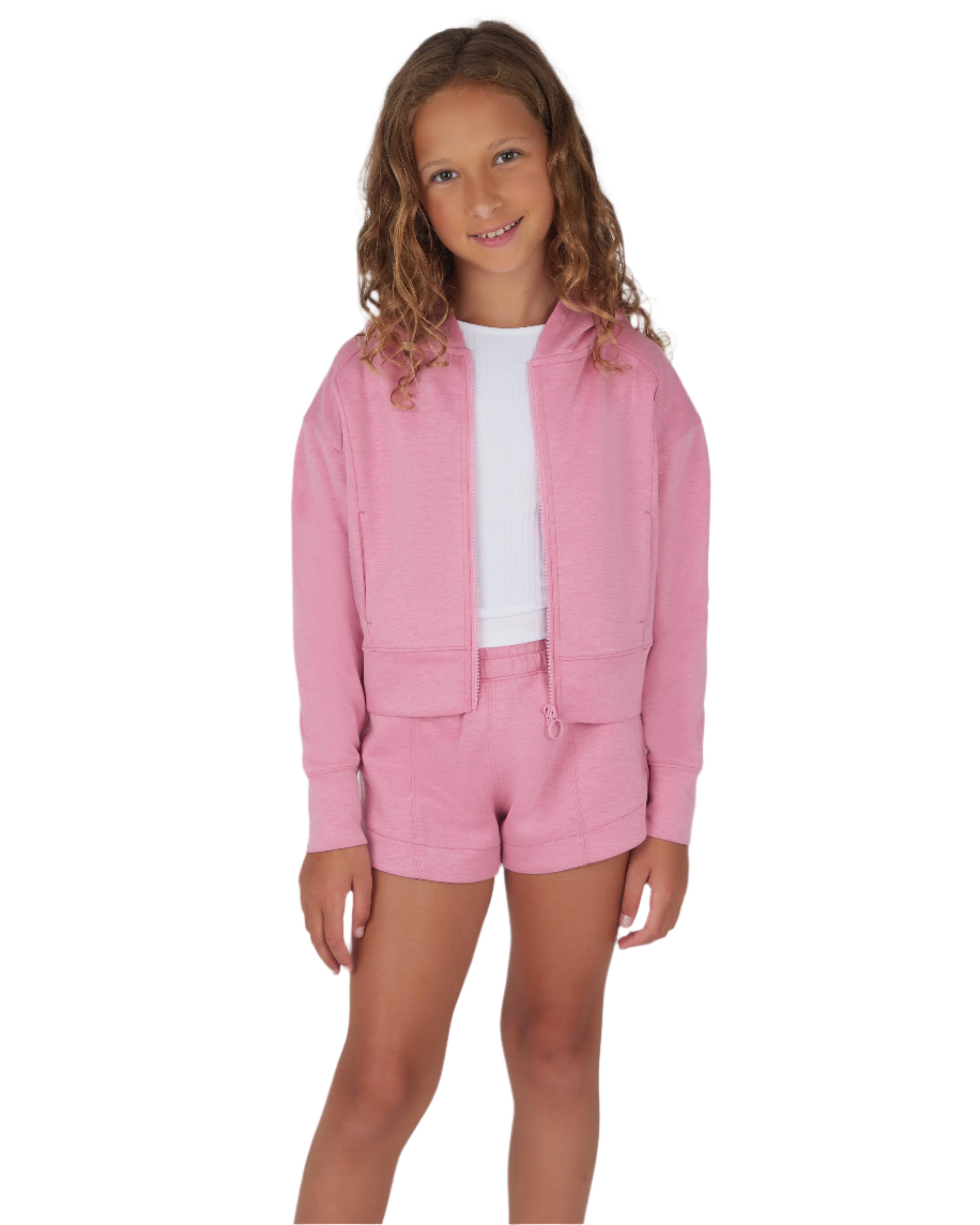Girls Scuba Front Zip Jacket with Pockets, Rib Fitted Tank, and Scuba Short - 3 PC SETHTR.CASHMERE