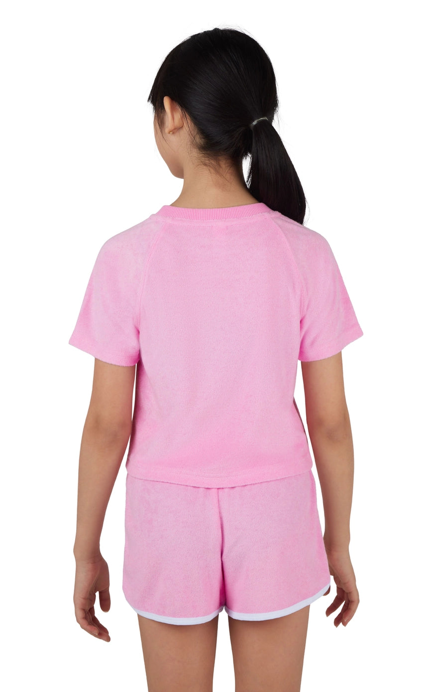 Girls Towel Terry Raglan Short Sleeve Tee and Dolphin Short with Front Pocket