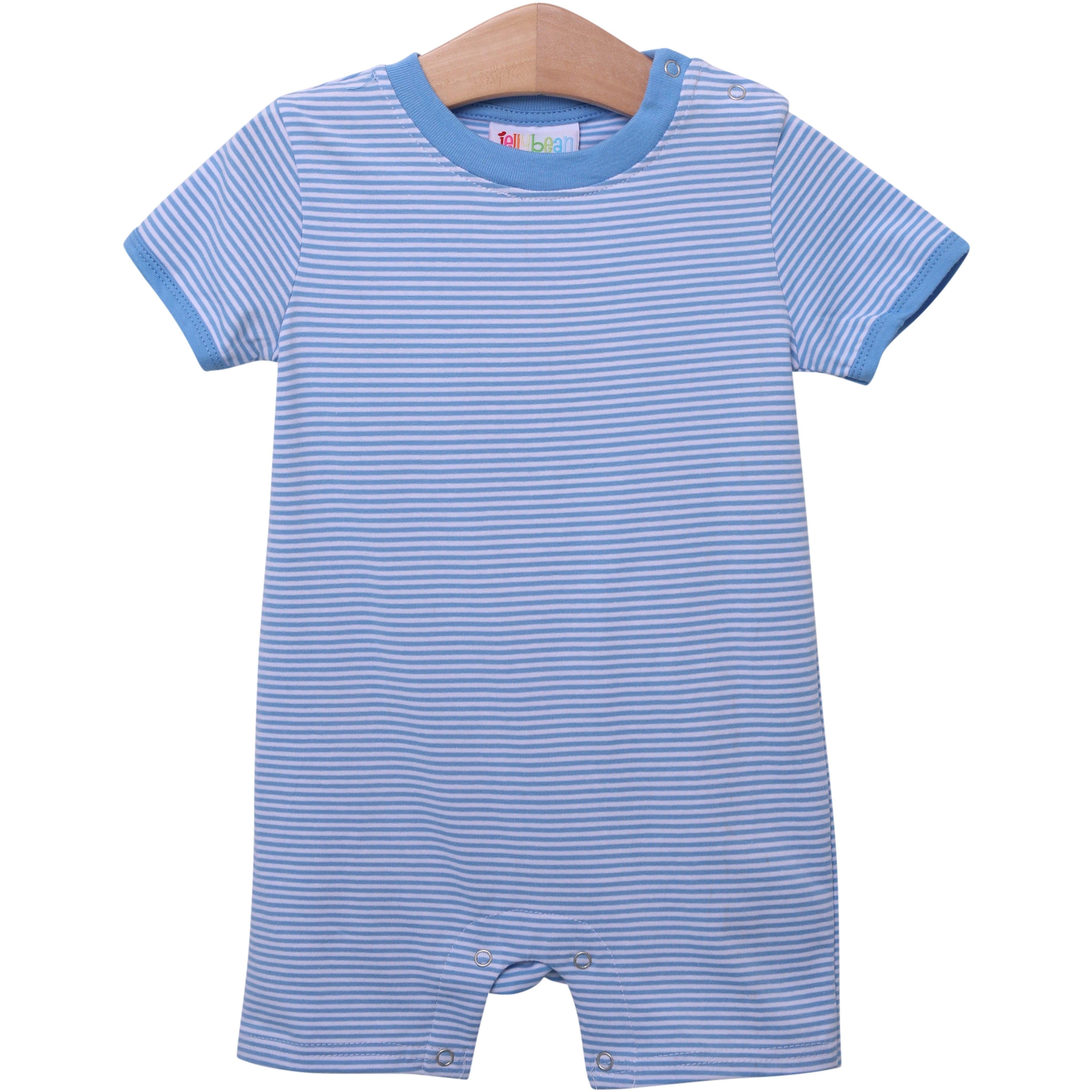Get back to basics in the Cornflower Blue Striped James Romper. As comfy as it is cute, it's light, bright, and perfect for Spring. Ready to wear as is or great for personalization.