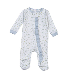 Snuggle your little sweetie in the Pink Bows Ruffle Zipper Footie! This cuddly one-piece features delicate pink ruffles along the zipper and an adorable bows and floral print that's too cute to resist! Crafted from super-soft Pima cotton that's gentle on baby's skin. Perfect for bouncing, crawling, or dreaming the day away!