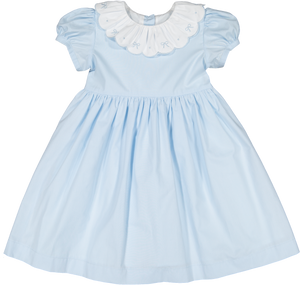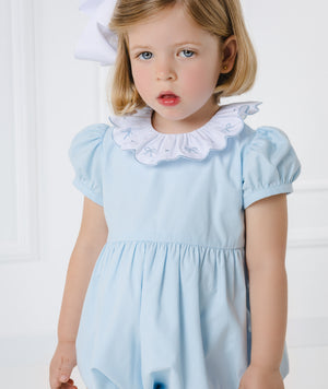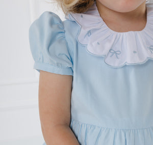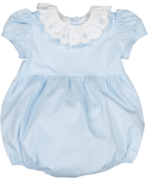 Dress your little one in the charming Classic Blue Rashguard, featuring a crisp white scalloped collar adorned with sweet blue bows.