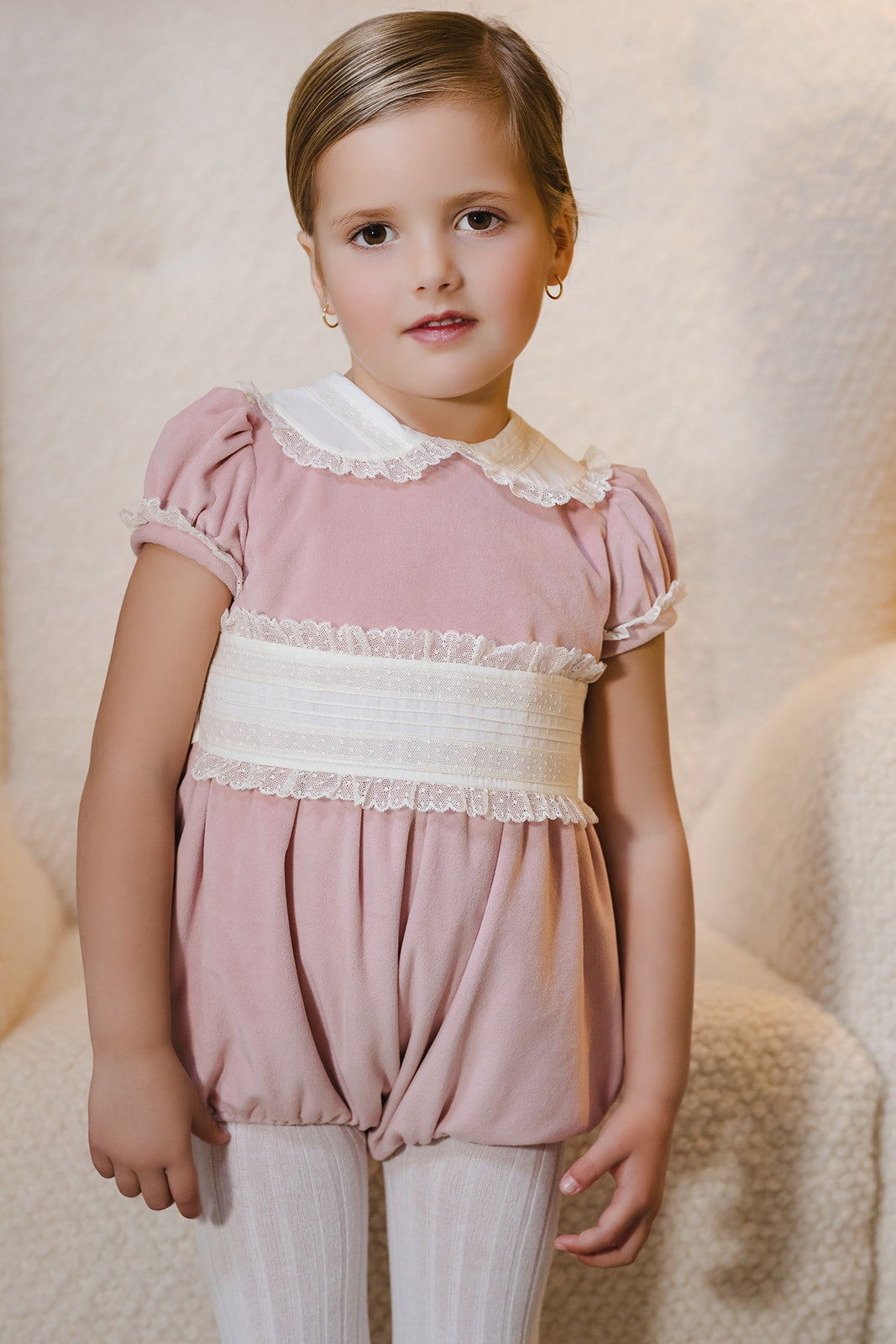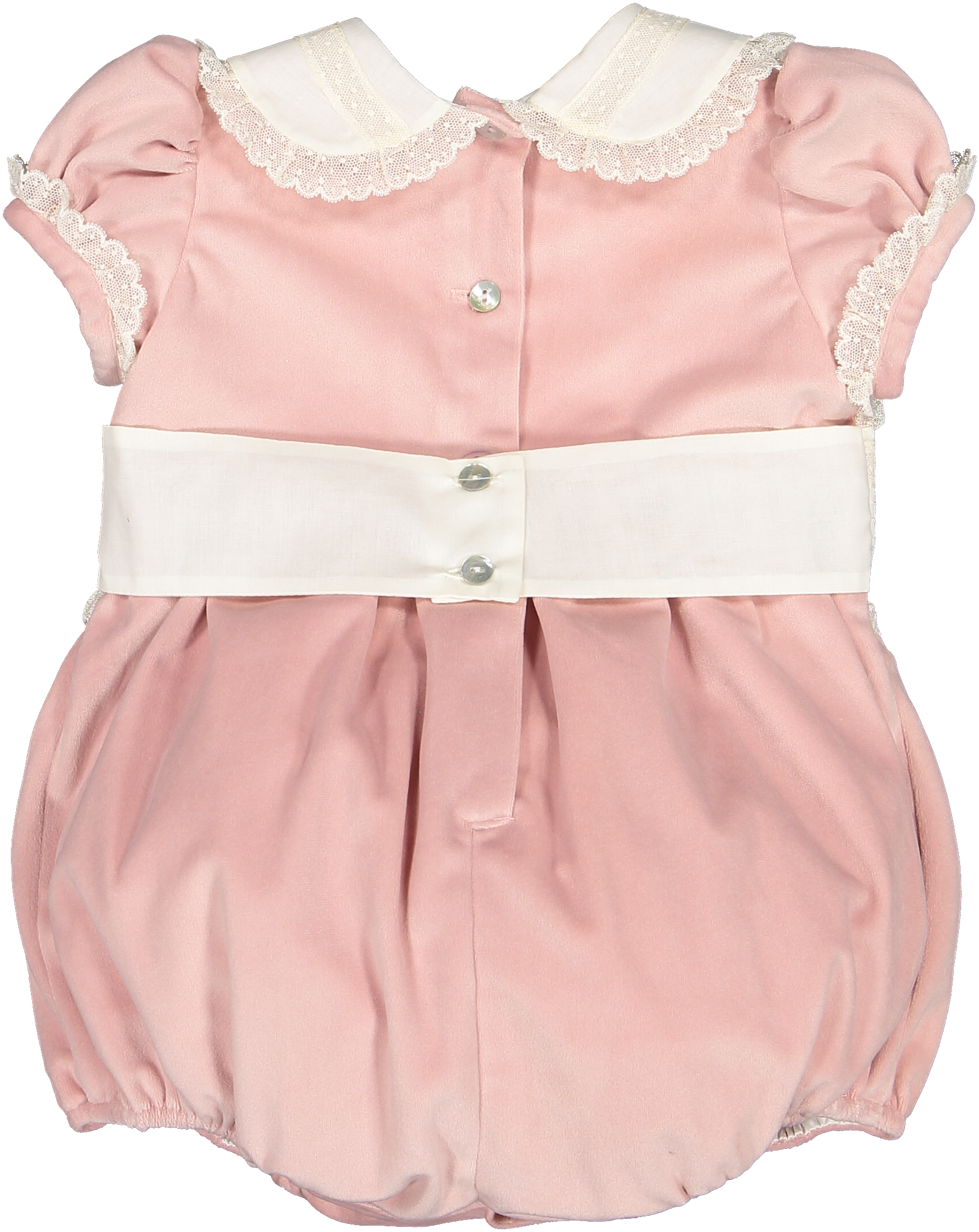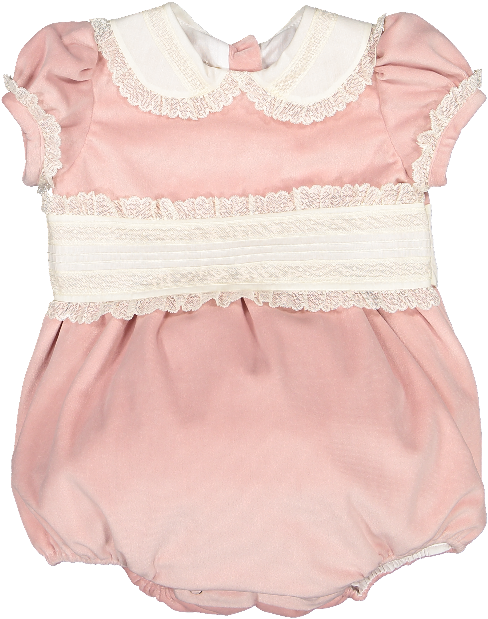 This Blush Velvet Bubble is perfect for any occasion! Featuring a white lace detail around the peter pan collar and sleeves, this bubble is both stylish and playful. A must-have for any girl's wardrobe. Matching sister dress available and Hair Clip!