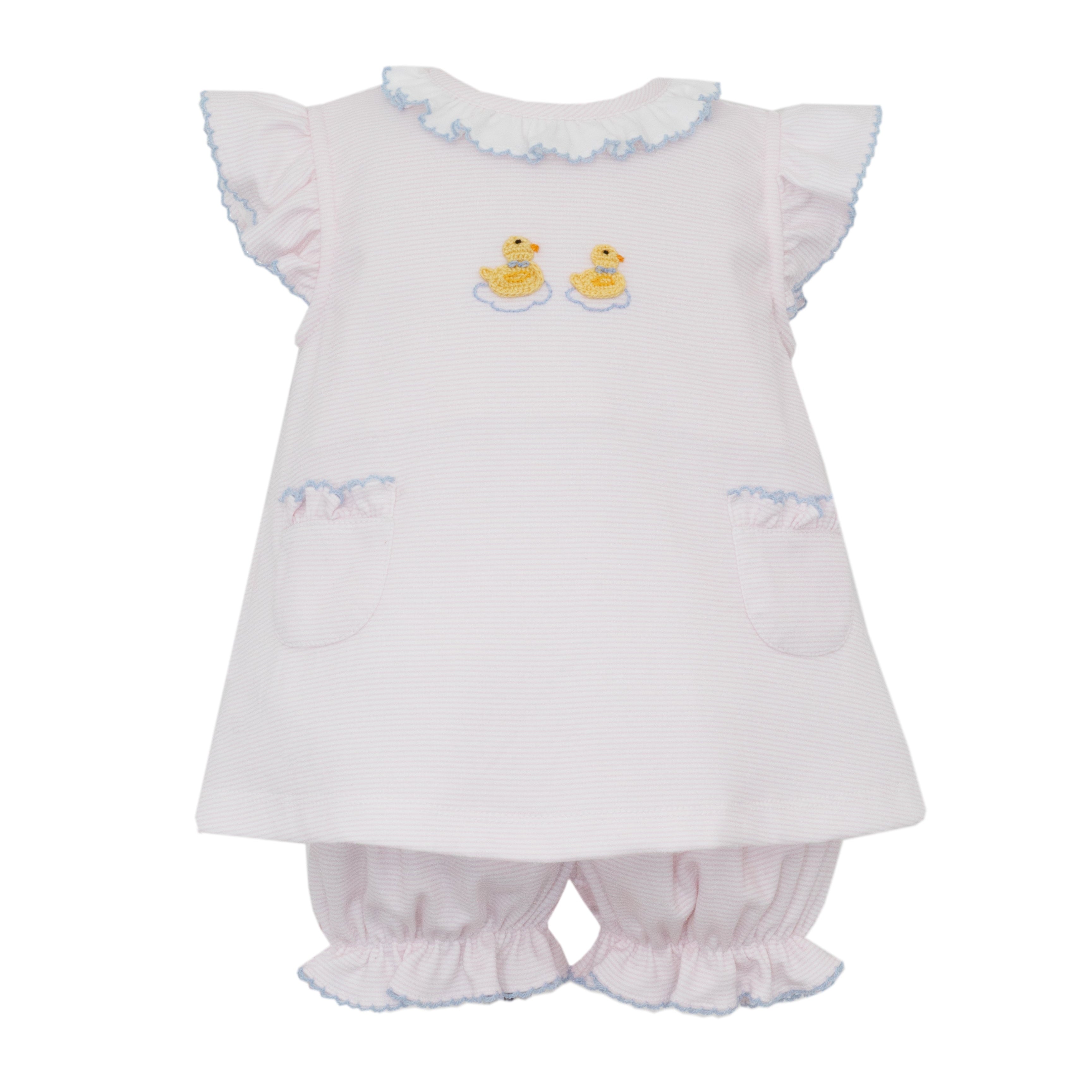 Petit Bebe- Duckling Girl´S- Pink Knit Stripe Sleeveless Bloomer Set