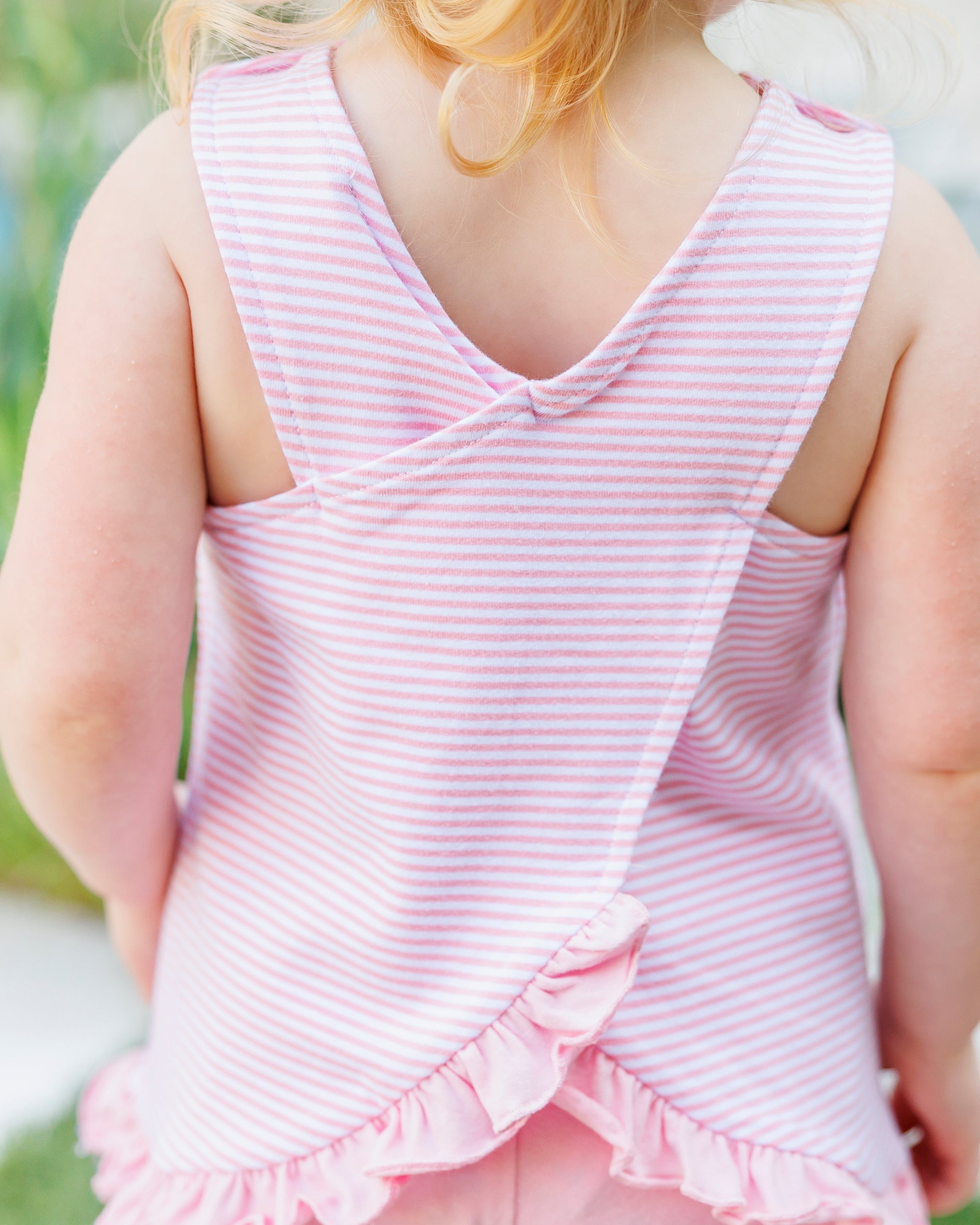 Get ready to swing into summer with our Swing Back Bloomer Set! This light pink striped set features a playful swing back top and comfortable bloomers. Perfect for those sunny days and endless fun. Don't miss out on this must-have set!