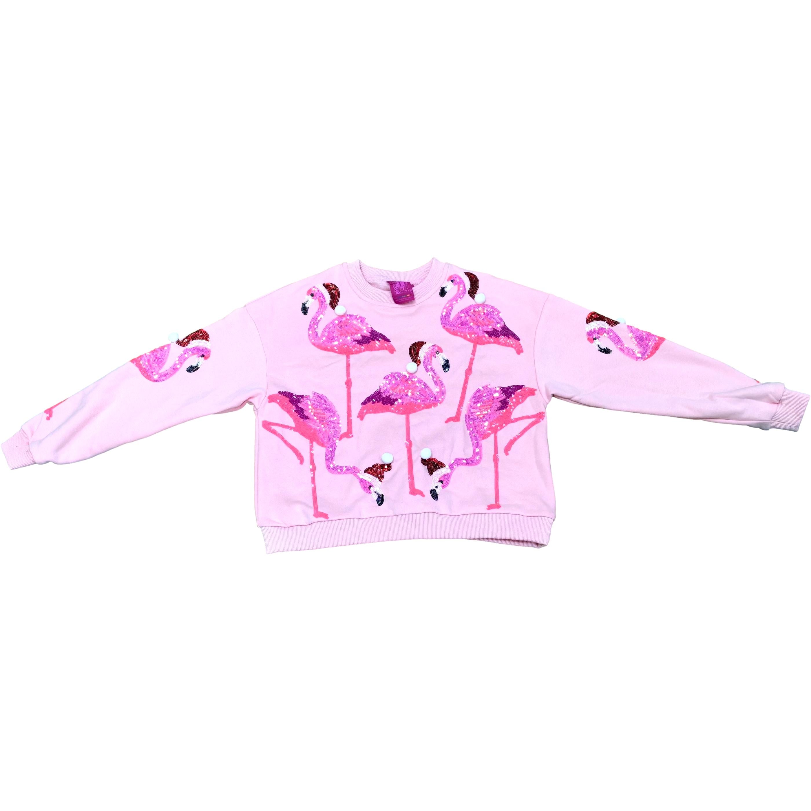 Queen of Sparkles- Light Pink Flamingo In Santa Hats Sweatshirt- Pink