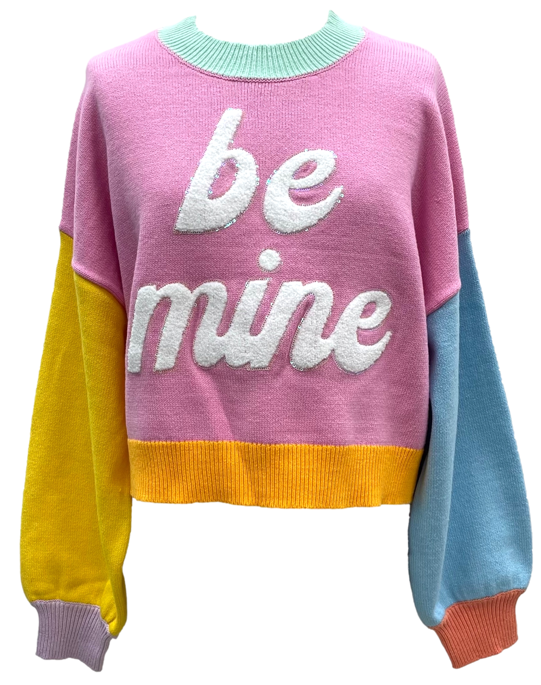 Queen of Sparkles- Pastel Colorblock Be Mine Sweater- Multi