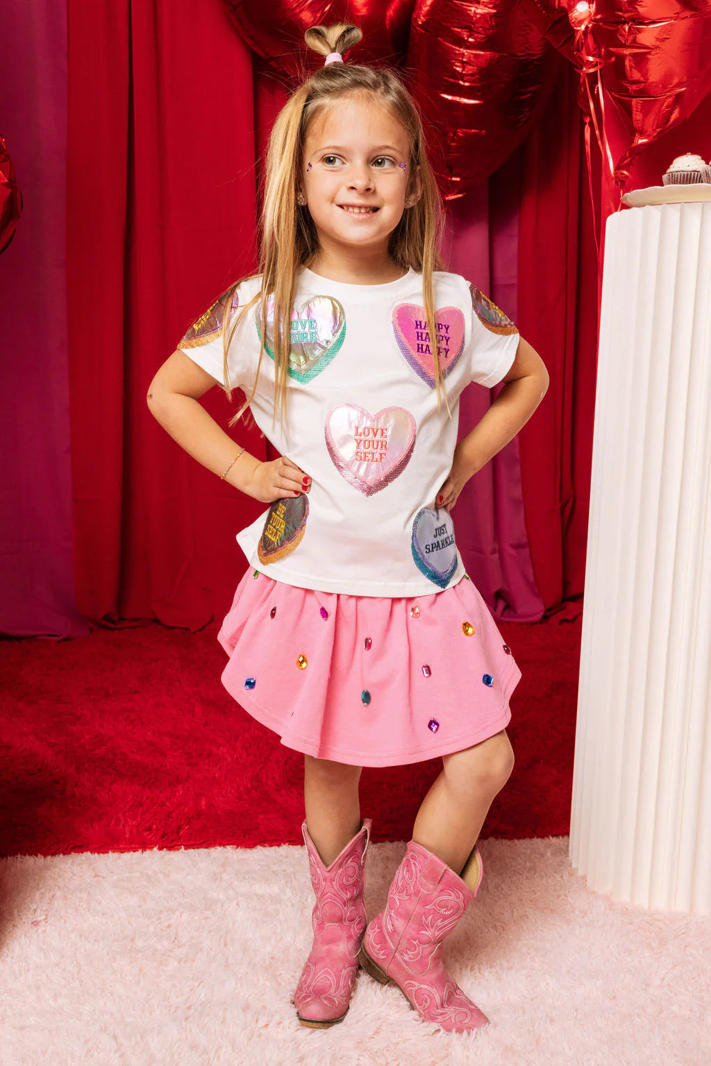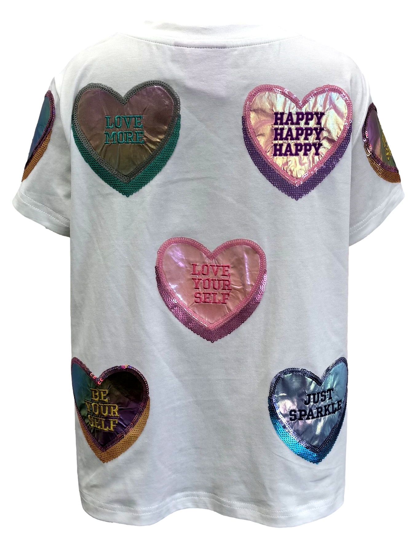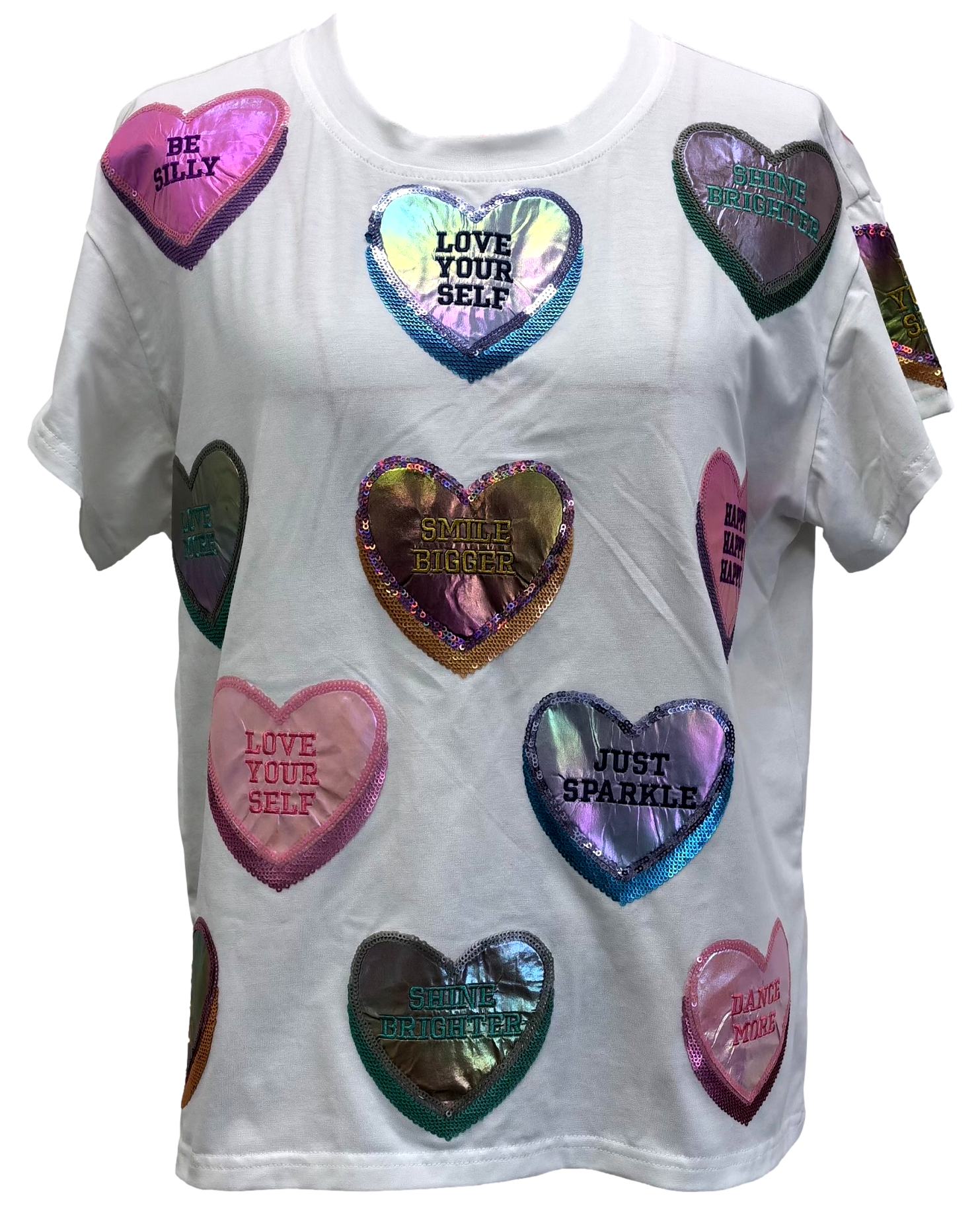 Queen of Sparkles- Positive Candy Hearts Tee- White
