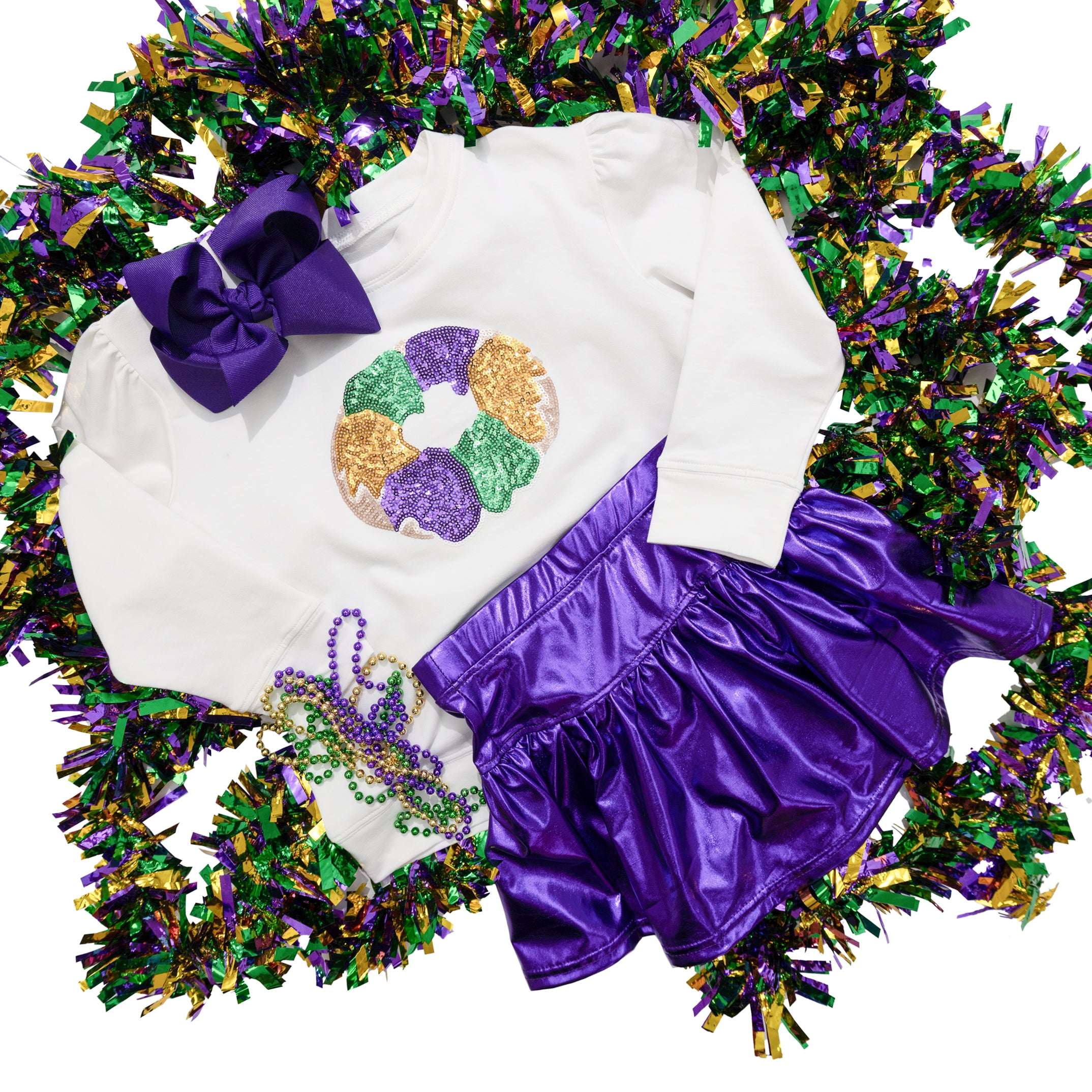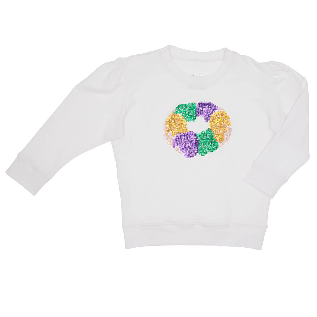 Azarhia- Sequin King Cake on white Holly Sweatshirt Mardi Gras